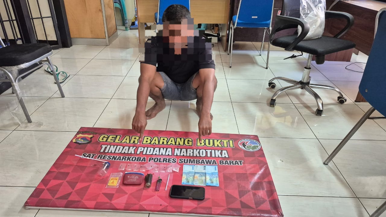 Sumbawa Barat NTB – Di awal rahun 2025 komitmen Polres Sumbawa Barat untuk mengikis peredaran Nsrkoba terus dilakukan, Tim Operasional ( opsnal ) Sat Res Narkoba Polres Sumbawa Barat berhasil mengamankan lelaki ( RR ) 37 th di runahnya di Kel. Sampir , Taliwang, Kamis 2 /01/ 2025 pukul 15.30 lalu.