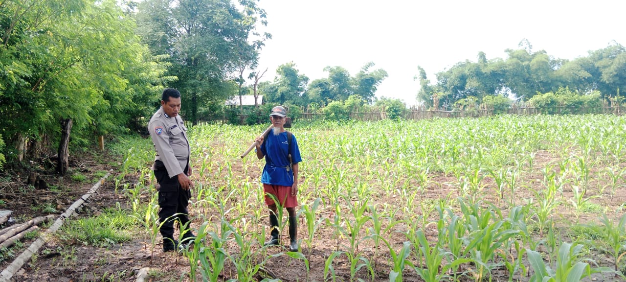 Polri Dukung Ketahanan Pangan: BKTM Desa Lepadi Lakukan Monitoring Lahan Kebun Jagung Warga