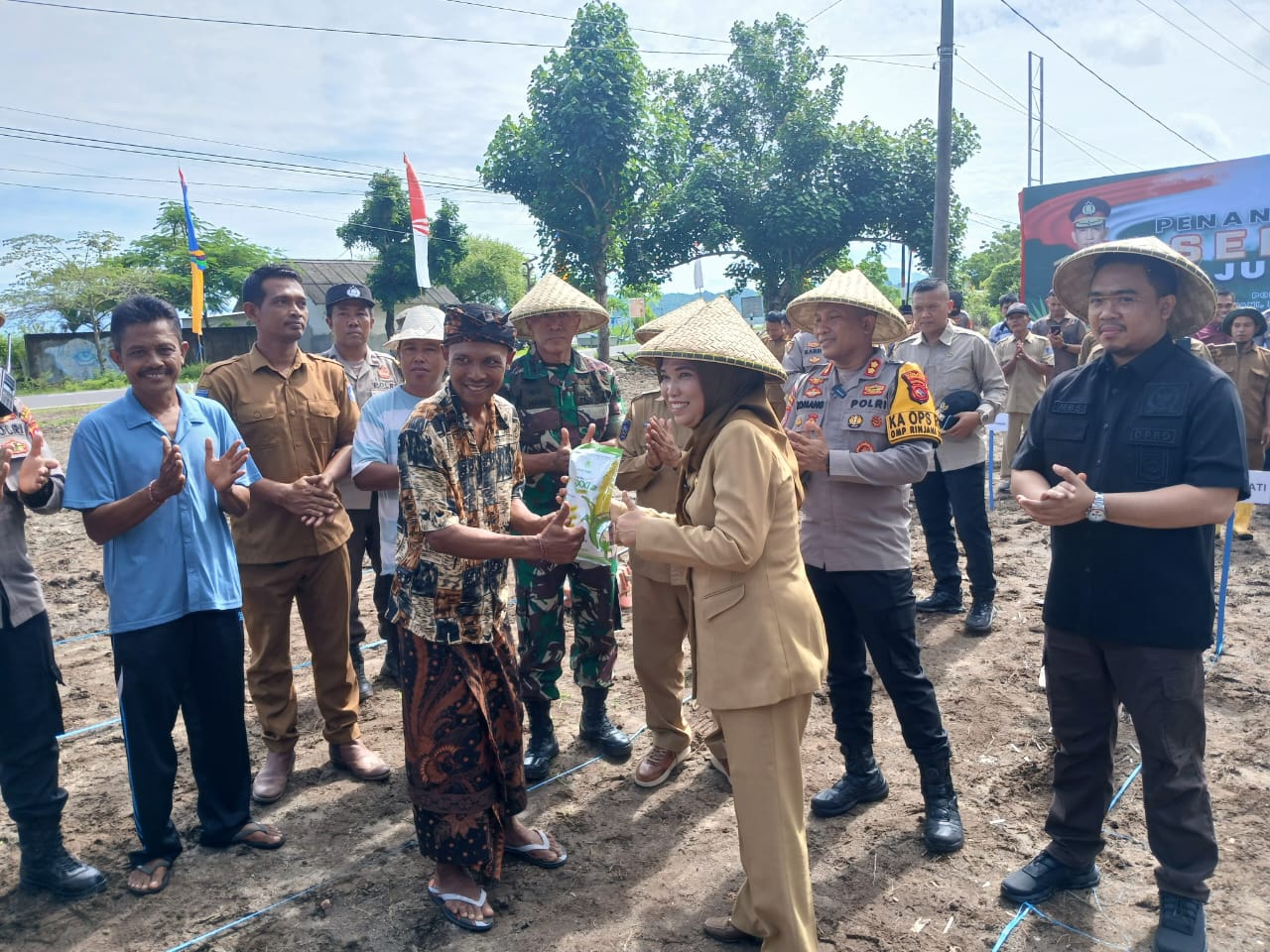 Acara yang berlangsung di tengah hamparan lahan pertanian ini dihadiri oleh sejumlah tokoh penting, di antaranya Bupati Lombok Barat, H. Ilham, S.Pd., M.Pd., Ketua DPRD Lombok Barat, Lalu Ivan Indaryadi, Kapolres Lombok Barat, AKBP I Komang Sarjana, S.I.K., S.H., Pabung Kodim 1606 Mataram, Letkol Inf Abdul Haris, S.H., M.H., perwakilan Kejaksaan Negeri Mataram, jajaran Kepala Dinas terkait di lingkungan Pemerintah Kabupaten Lombok Barat, perwakilan Bulog Lombok Barat, Komandan Kompi IV Yon A Brimob Lombok Barat, Camat Sekotong, Kepala Desa Sekotong Barat, serta anggota Kelompok Tani Dusun Mekar Sari dan masyarakat setempat.