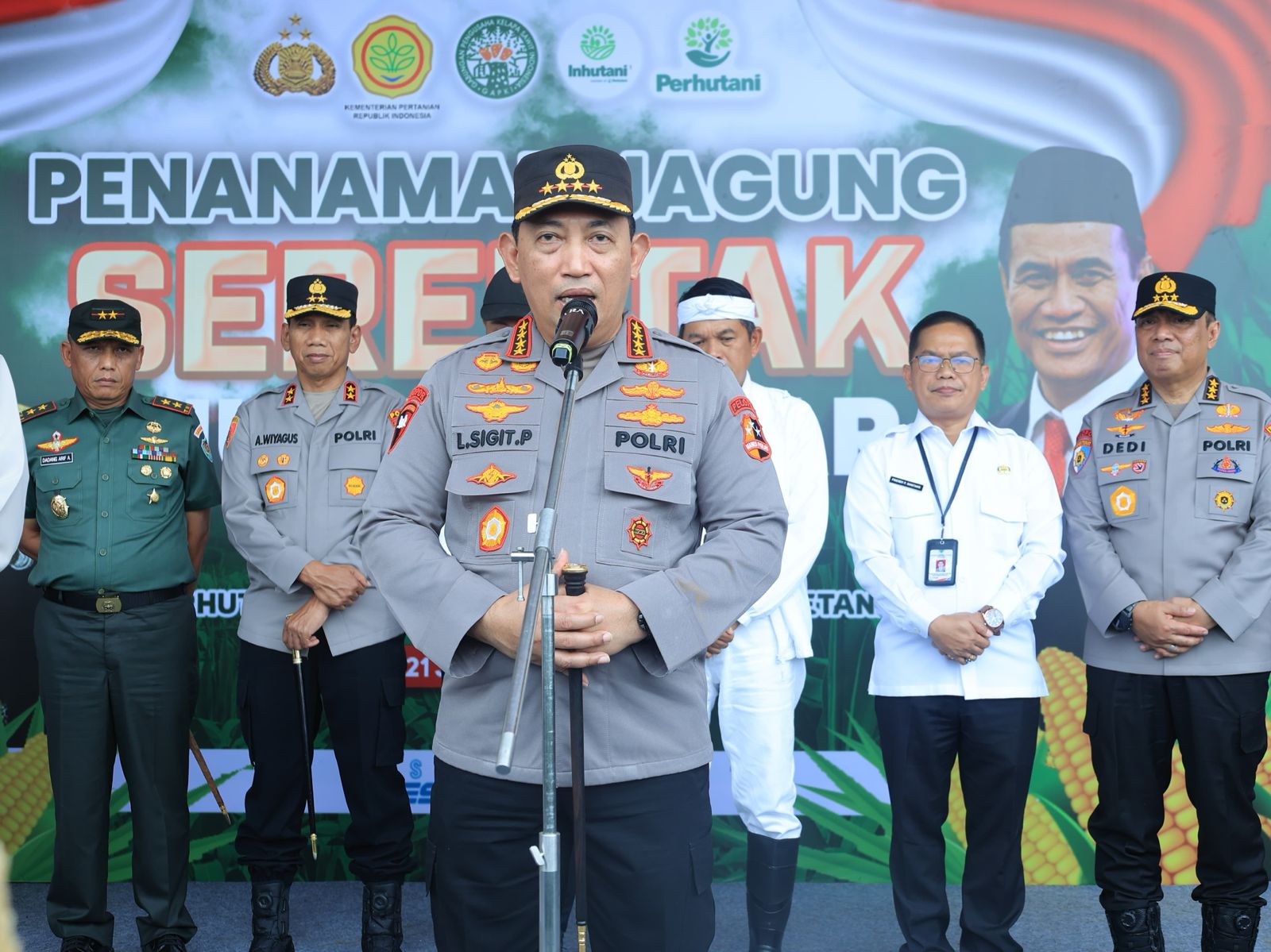 Kepala Kepolisian Negara Republik Indonesia (Kapolri), Jenderal Polisi Drs. Listyo Sigit Prabowo, M.Si., menyampaikan bahwa Polri telah memasuki kuartal pertama pelaksanaan program ini dengan target penanaman 300 ribu hektare lahan jagung.