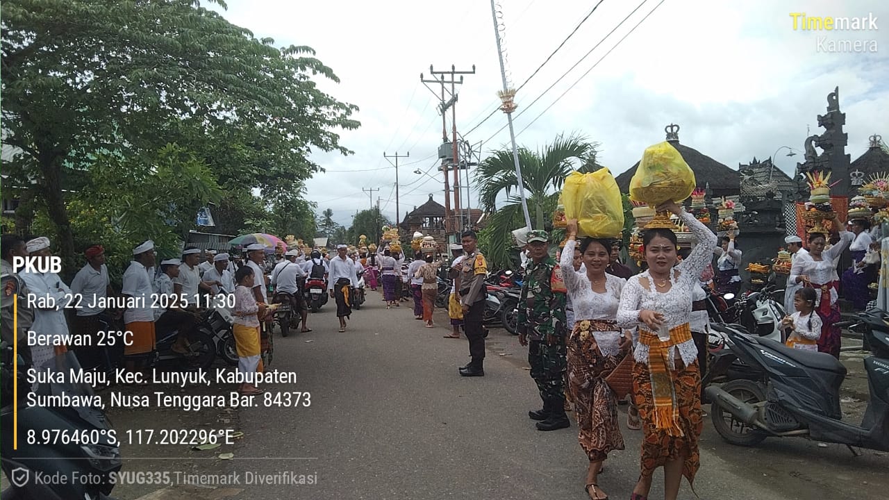 Pada kali ini,  Bhabinkamtibmas Desa Sukamaju, Saparwadi Ario, bersama dengan Babinsa Sertu M. Arifin, bersama Anggota Polsek Lunyuk, melaksanakan pengamanan kegiatan keagamaan warga binaan di Pura Penataran Ped, Desa Sukamaju.Rabu (22/01/25) pagi.