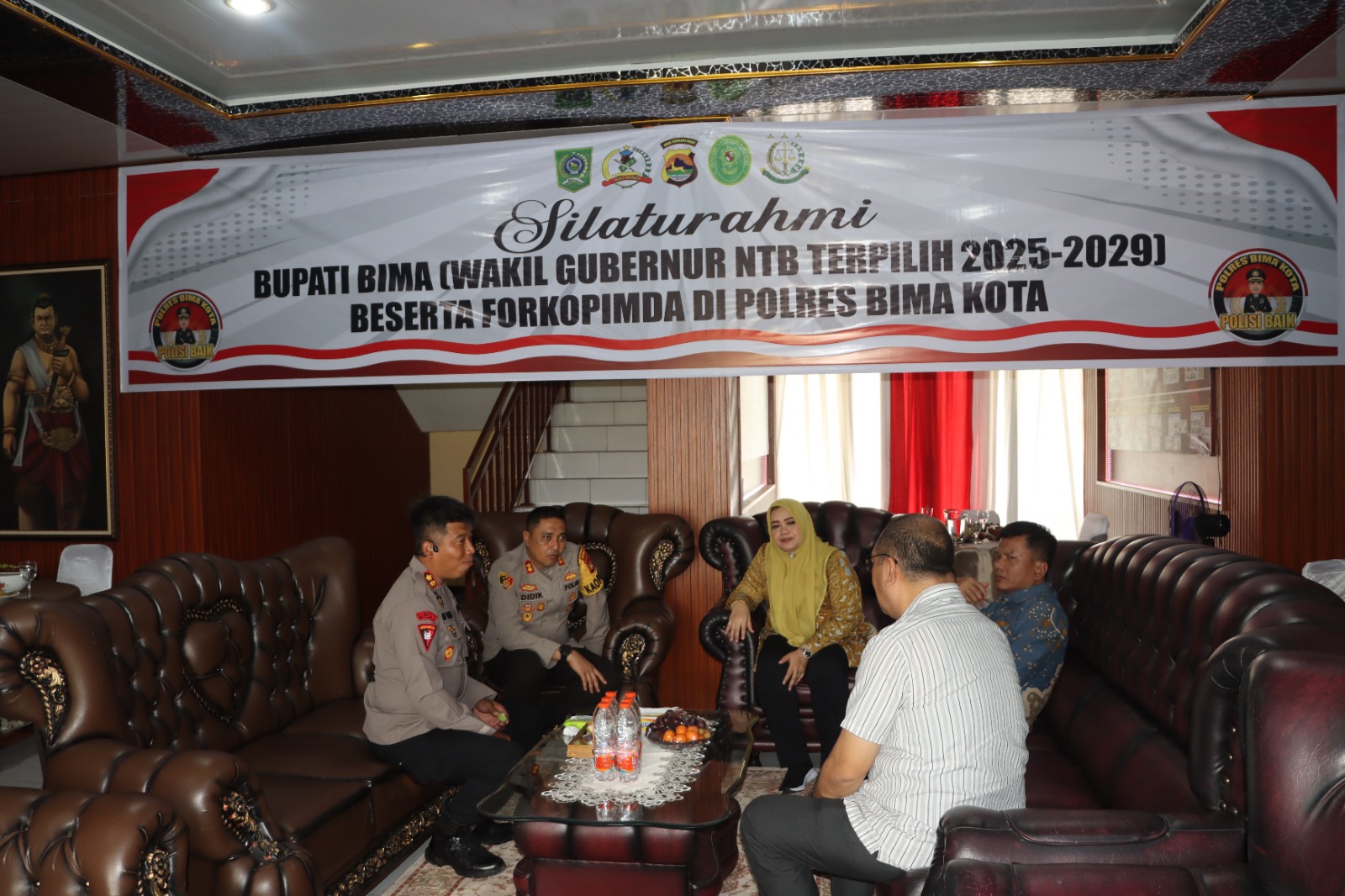 Bima Kota – Pada hari Jumat, 31 Januari 2025, pukul 10.00 WITA, Kapolres Bima Kota AKBP Didik Putra Kuncoro, S.I.K., M.Si. menerima kunjungan silaturahmi Bupati Bima, Hj. Indah Dhamayanti Putri, S.E., M.I.P., yang juga merupakan Wakil Gubernur NTB terpilih periode 2025-2029, beserta jajaran Forum Koordinasi Pimpinan Daerah (Forkopimda) di Polres Bima Kota.