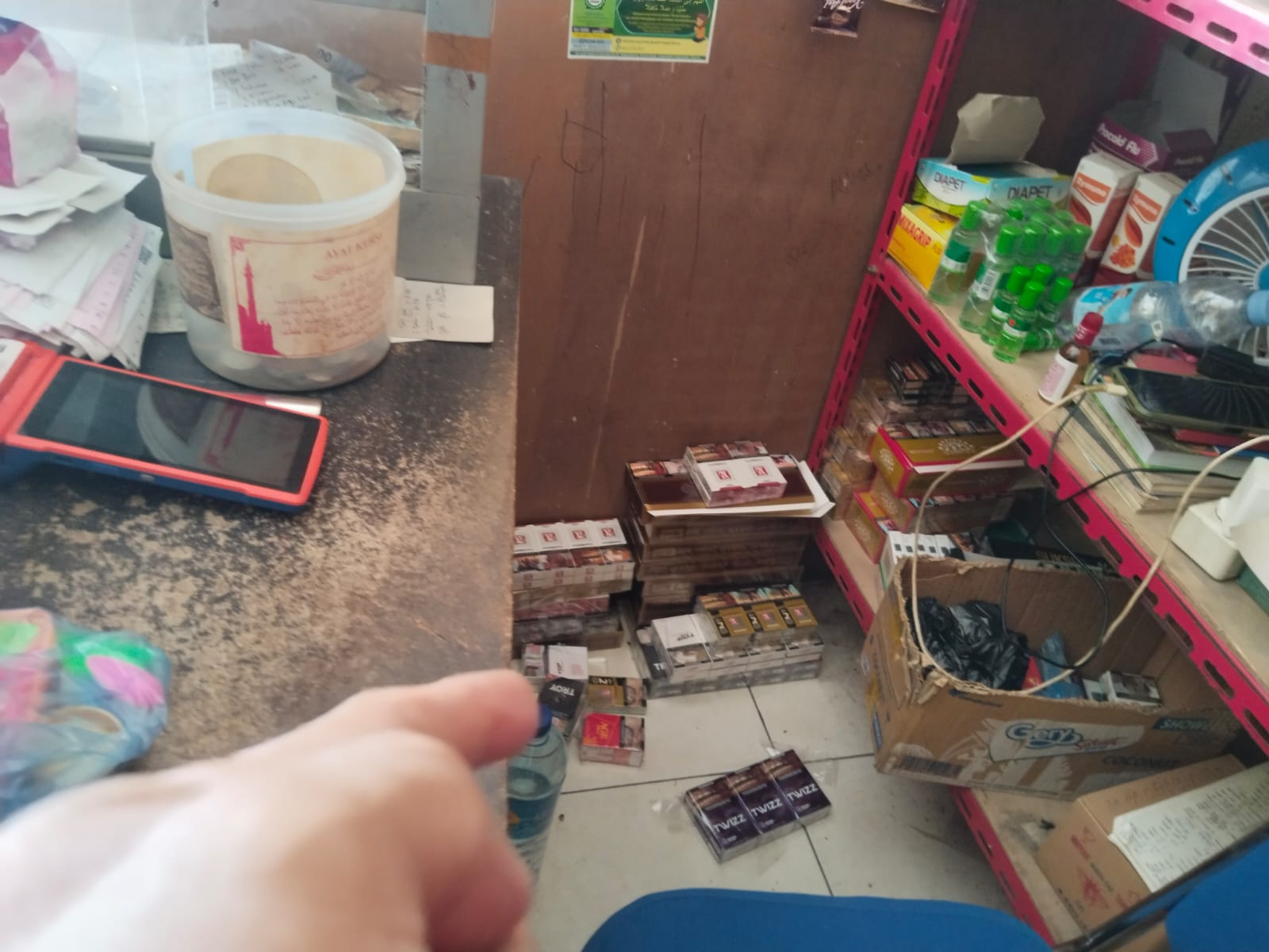 Dari tangan pelaku, polisi berhasil menyita sejumlah barang bukti berupa Rokok merek Gudang Garam Surya 12 sebanyak 1 slop dan 9 bungkus, Rokok merek Sampoerna Mild sebanyak 6 bungkus, Rokok merek Raptor sebanyak 4 bungkus, 1 lembar sarung dan 1 karung.