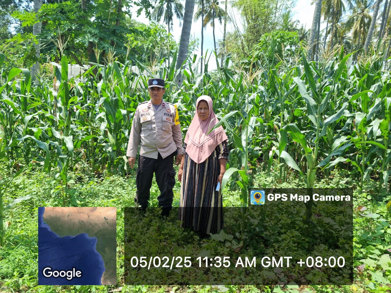 Dalam rangka mendukung program Ketahanan Pangan Nasional Menuju Indonesia Emas 2025, Bhabinkamtibmas Polsek Kilo, Aipda M. Nursalam, melaksanakan pemantauan terhadap lahan pertanian jagung milik Sdri. Onte di Dusun Lo, Desa Kramat, Kecamatan Kilo, Kabupaten Dompu, pada Rabu (5/2) pukul 10.15 WITA.