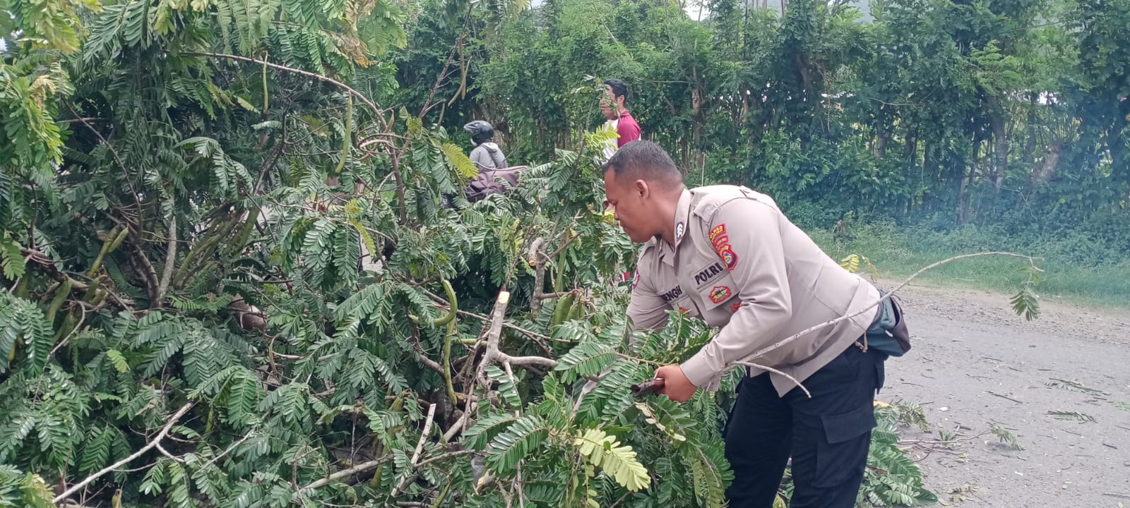 Polsek Poto Tano Bersama Masyarakat Respon Cepat Evakuasi Pohon Tumbang di Jalan Utama