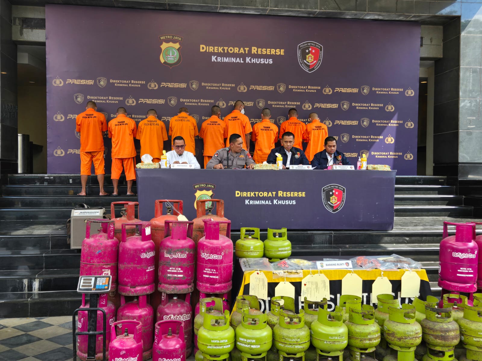 “Para pelaku memindahkan isi gas elpiji ukuran 3 kg (subsidi) ke tabung gas elpiji kosong ukuran 12 kg dan 50 kg (non-subsidi),” ujar Wadirreskrimsus dalam konferensi pers, Kamis (13/2/25).