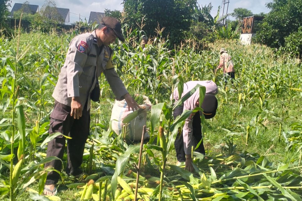 Bhabinkamtibmas dan Kanit Bimas Labuapi Dukung Ketahanan Pangan dengan Panen Jagung