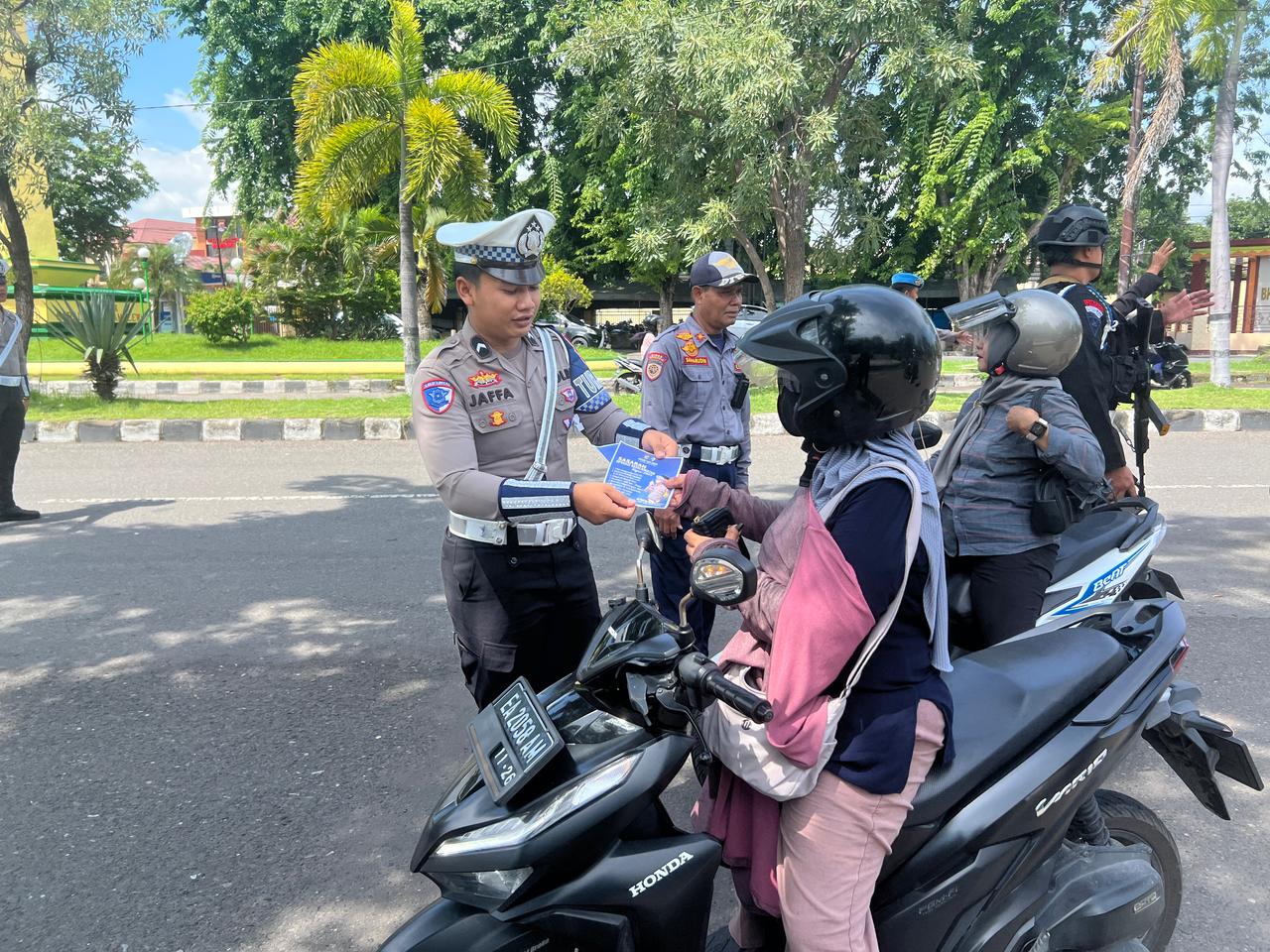Dalam setiap kegiatan, pihaknya juga memberikan dan membagikan brosur himbauan tertib berlalu  lintas kepada pengendara dengan tujuan agar para pengendara agar senantias mengutamakan keselamtan dalam berlalu lintas.