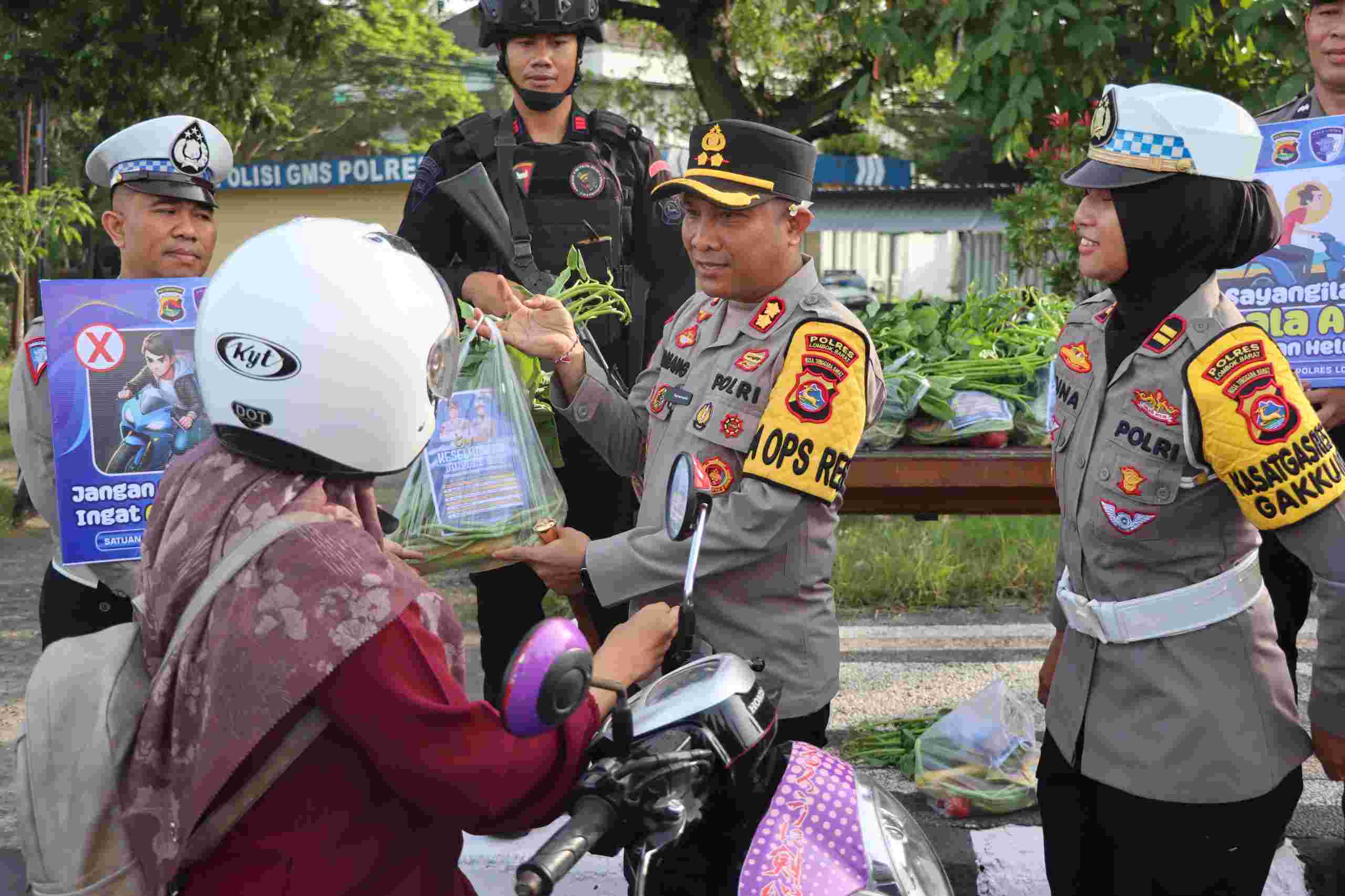 Hal menarik dalam Operasi Keselamatan Rinjani 2025 ini adalah pemberian reward berupa sayuran kepada pengendara yang tertib berlalu lintas. Langkah ini tidak hanya sebagai bentuk apresiasi atas kepatuhan pengendara terhadap aturan lalu lintas, tetapi juga sebagai dukungan terhadap program ketahanan pangan.