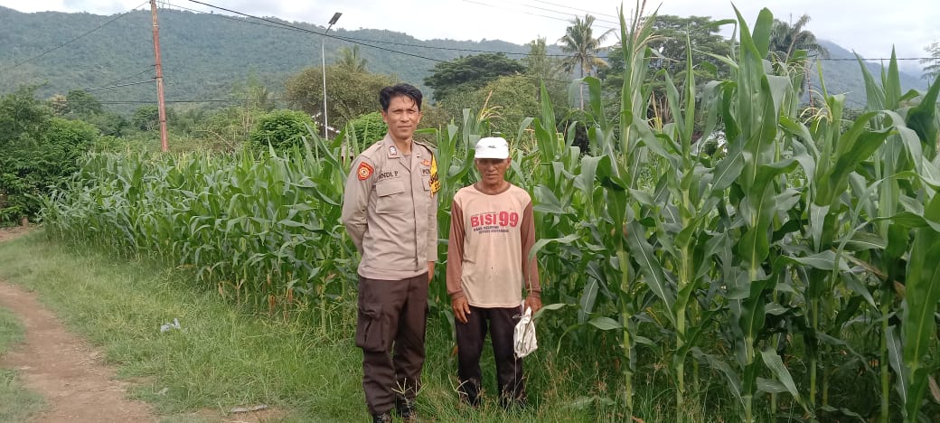 Dalam kegiatan ini, Bripka Andi Prabata mengecek langsung kondisi tanaman jagung yang menjadi bagian dari program ketahanan pangan nasional. Ia juga memberikan motivasi kepada para petani terkait pentingnya penggunaan pupuk bersubsidi secara teratur agar tanaman jagung tumbuh optimal sesuai harapan.