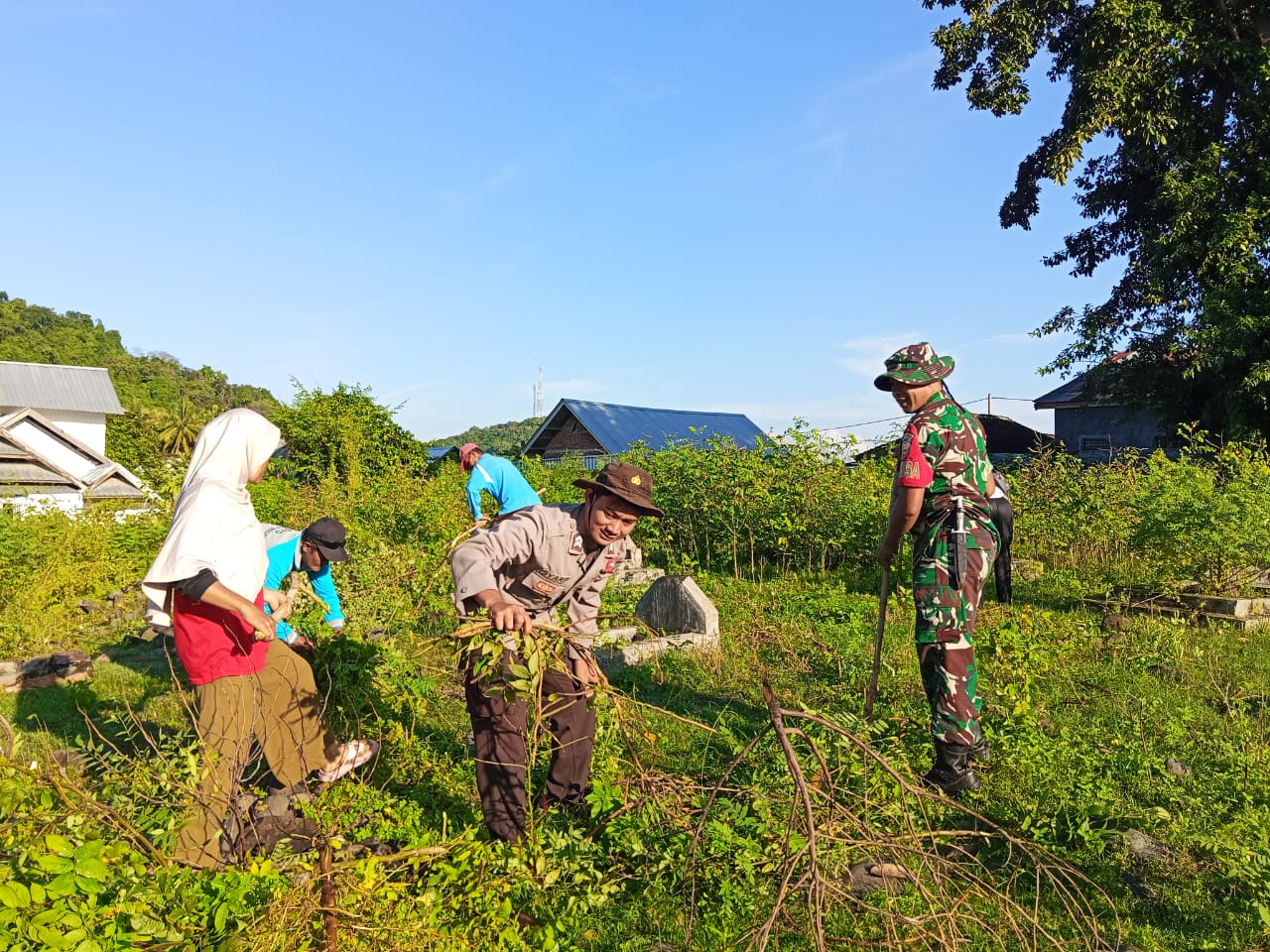 Bhabinkamtibmas Desa Belo Bersama Tiga Pilar dan Masyarakat Bersihkan TPU