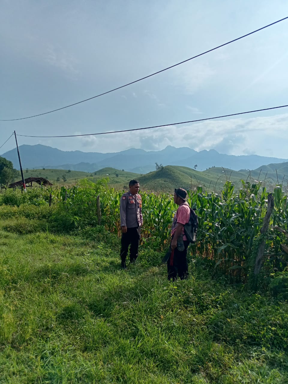 Dalam upaya mendukung Program Ketahanan Pangan Nasional Menuju Indonesia Emas 2025, Bhabinkamtibmas Desa Marada, Aipda Julkifli, melaksanakan pemantauan pemanfaatan lahan pertanian warga di Dusun Tenga, Desa Marada, Kecamatan Hu’u, Jumat (28/2/2025).