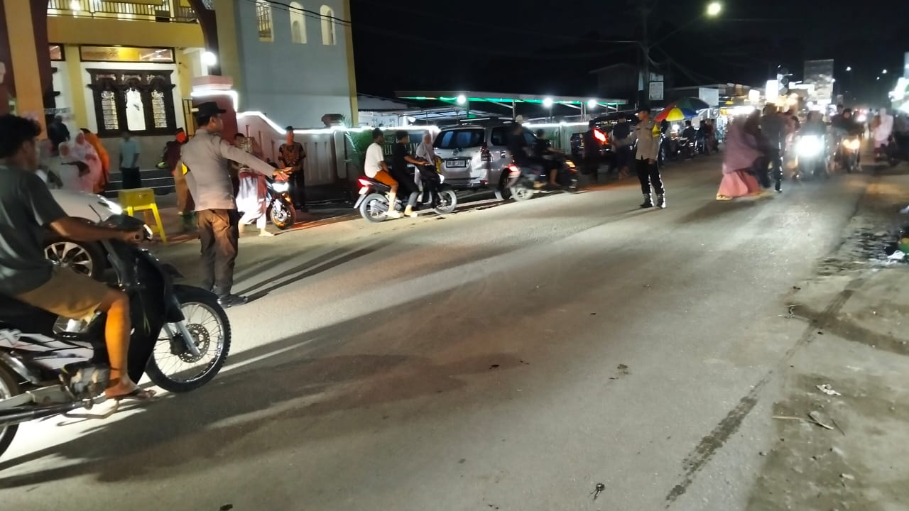 Masih Kasi Humas, selain itu, masyarakat yang hendak ke masjid dan menyeberang jalan maka petugas membantu menyeberangkan sehingga masyarakat merasa aman dari padatnya arus lalu lintas.