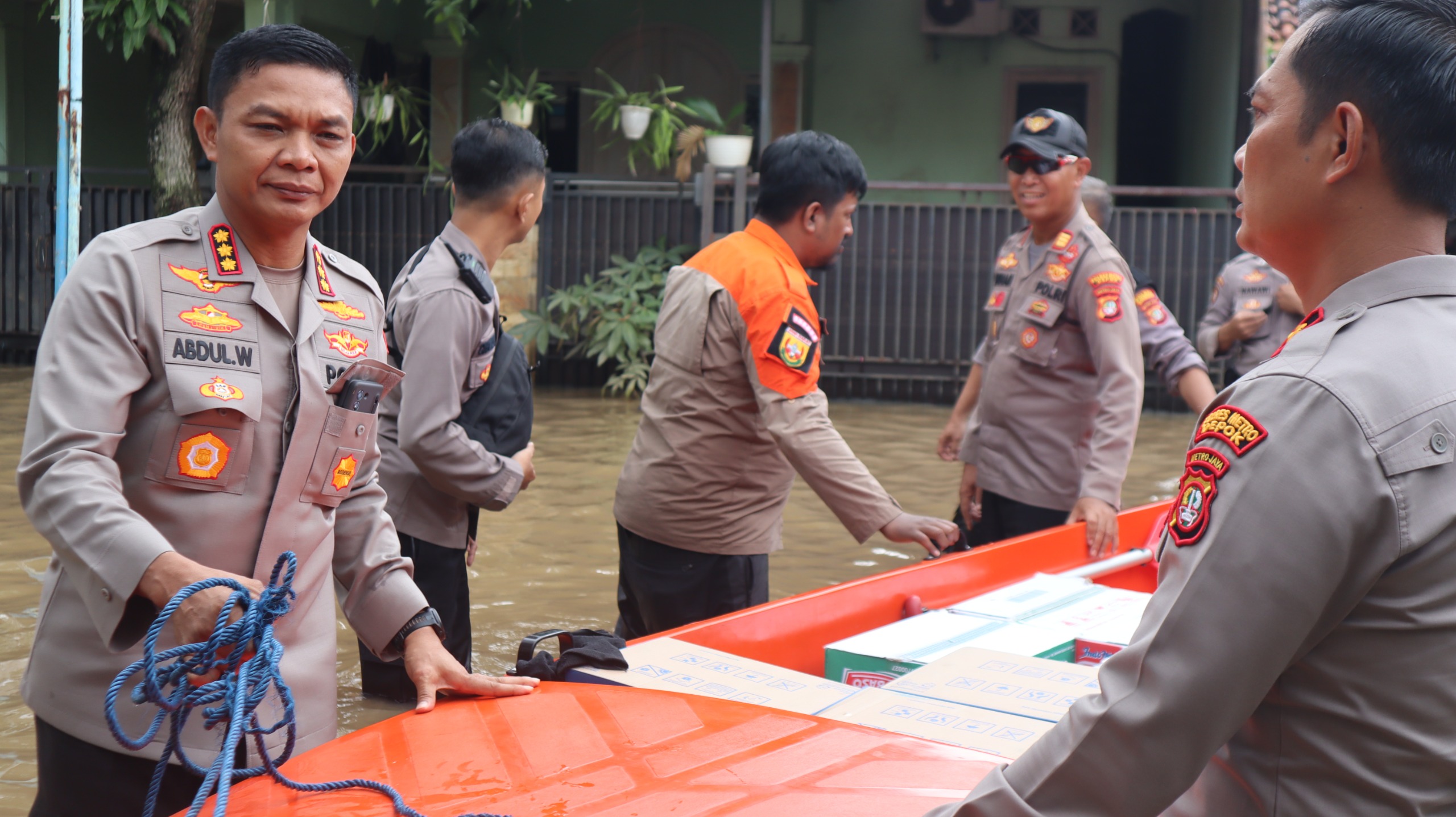 Mereka berpatroli untuk memastikan keamanan terhadap lingkungan yang terdampak banjir. Tim yang berada di bawah Direktorat Samapta Korsabhara pimpinan Irjen Mulia Hasudungan Ritonga mengerahkan peralatan penyelamatan termasuk rantis rescue, perahu karet dengan mesin motor, pelampung, helm rescue, serta mesin penyedot air.