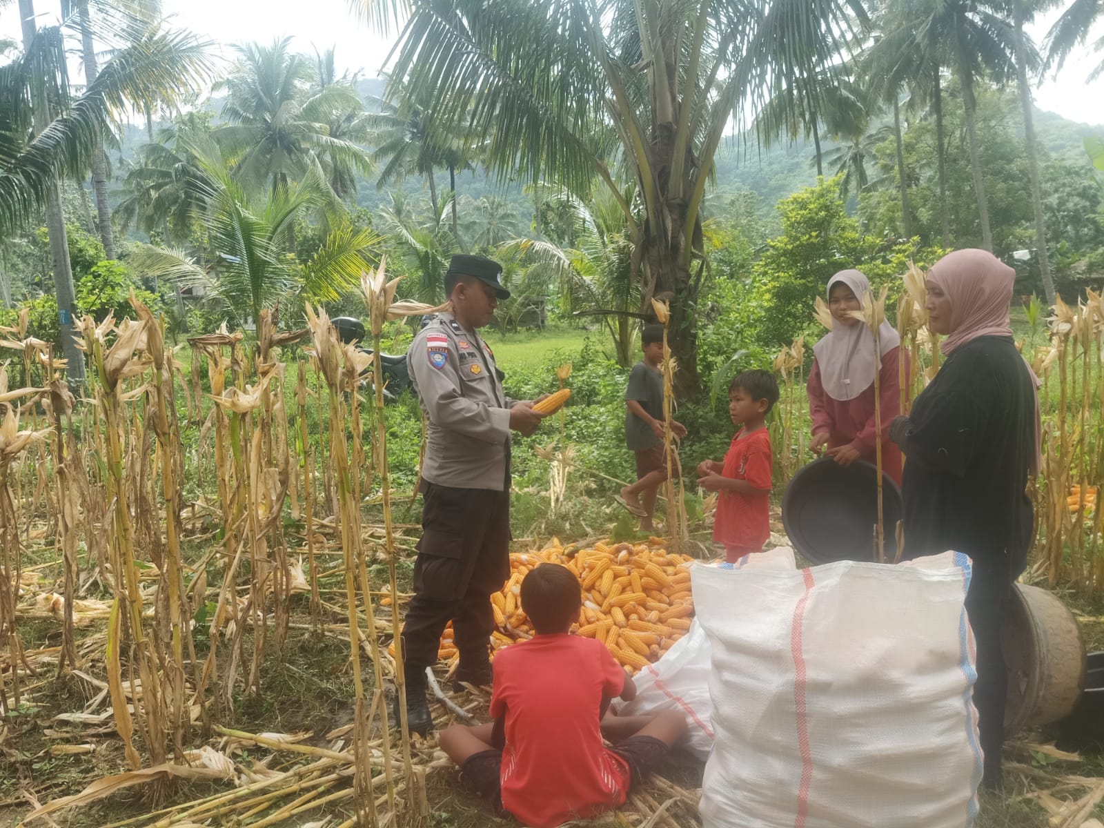 Bhabinkamtibmas di Sekotong Dampingi Petani Panen Jagung, Dukung Ketahanan Pangan