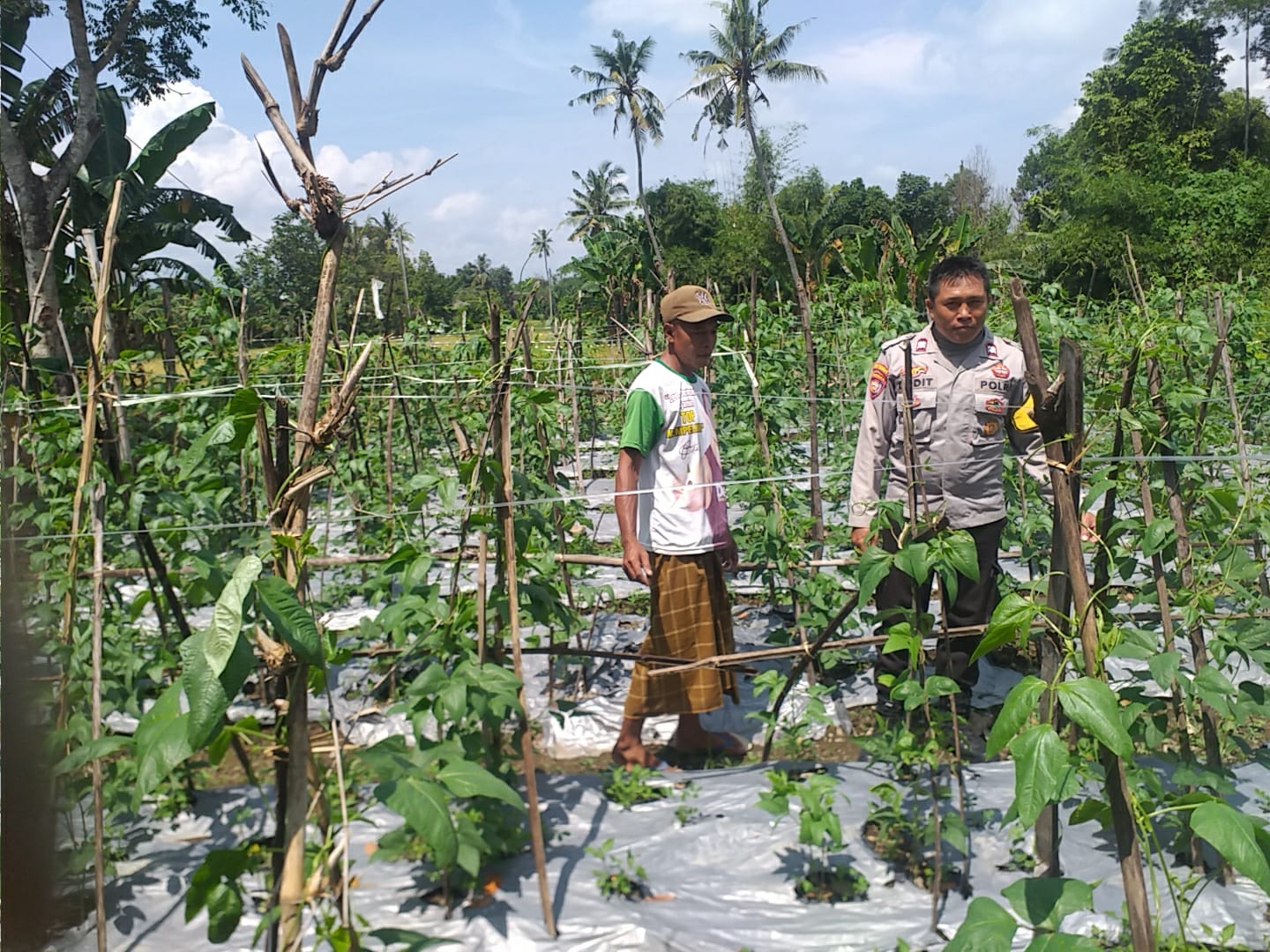 Bhabinkamtibmas Desa Jagaraga ini secara langsung mengajak Bapak Muhlis untuk memulai memanfaatkan lahan miliknya yang berada di RT. 02 Dusun Dasan Geres Pande. Ia memberikan contoh tanaman sayur-sayuran yang mudah ditanam dan memiliki nilai ekonomis, seperti kacang panjang, kacang tanah, dan cabe.