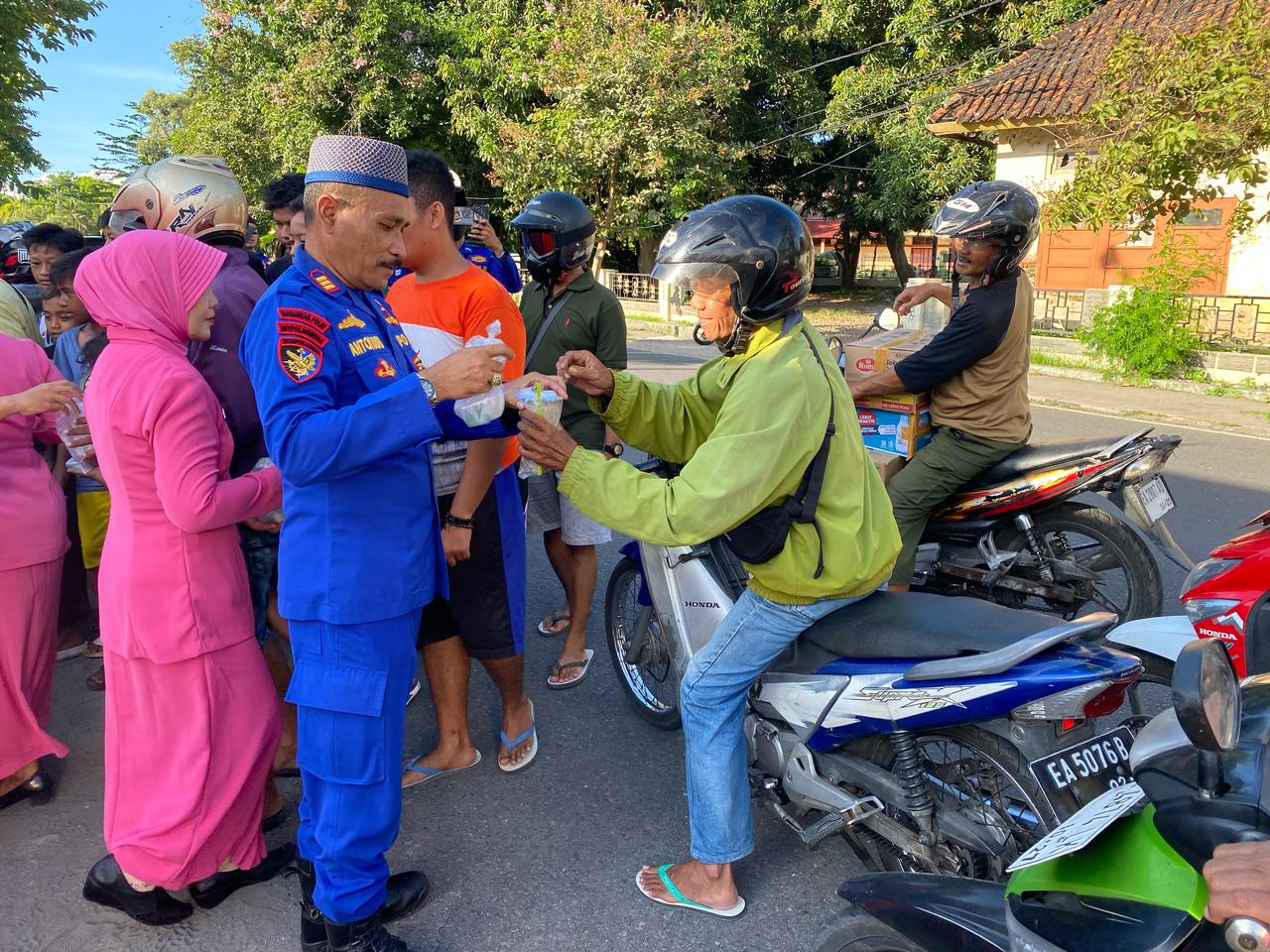 Sumbawa Besar-NTB, Dalam rangka memanfaatkan momen bulan suci Ramadhan, Sat Polairud Polres Sumbawa menggelar kegiatan pembagian takjil gratis kepada masyarakat yang melintas di depan Mapolres Sumbawa. Kegiatan sosial ini dipimpin langsung oleh Kepala Satuan Polairud (Kasat Polairud), AKP Antonius Dopo, bersama personel Sat Polairud serta Bhayangkari, Rabu (12/03/25).