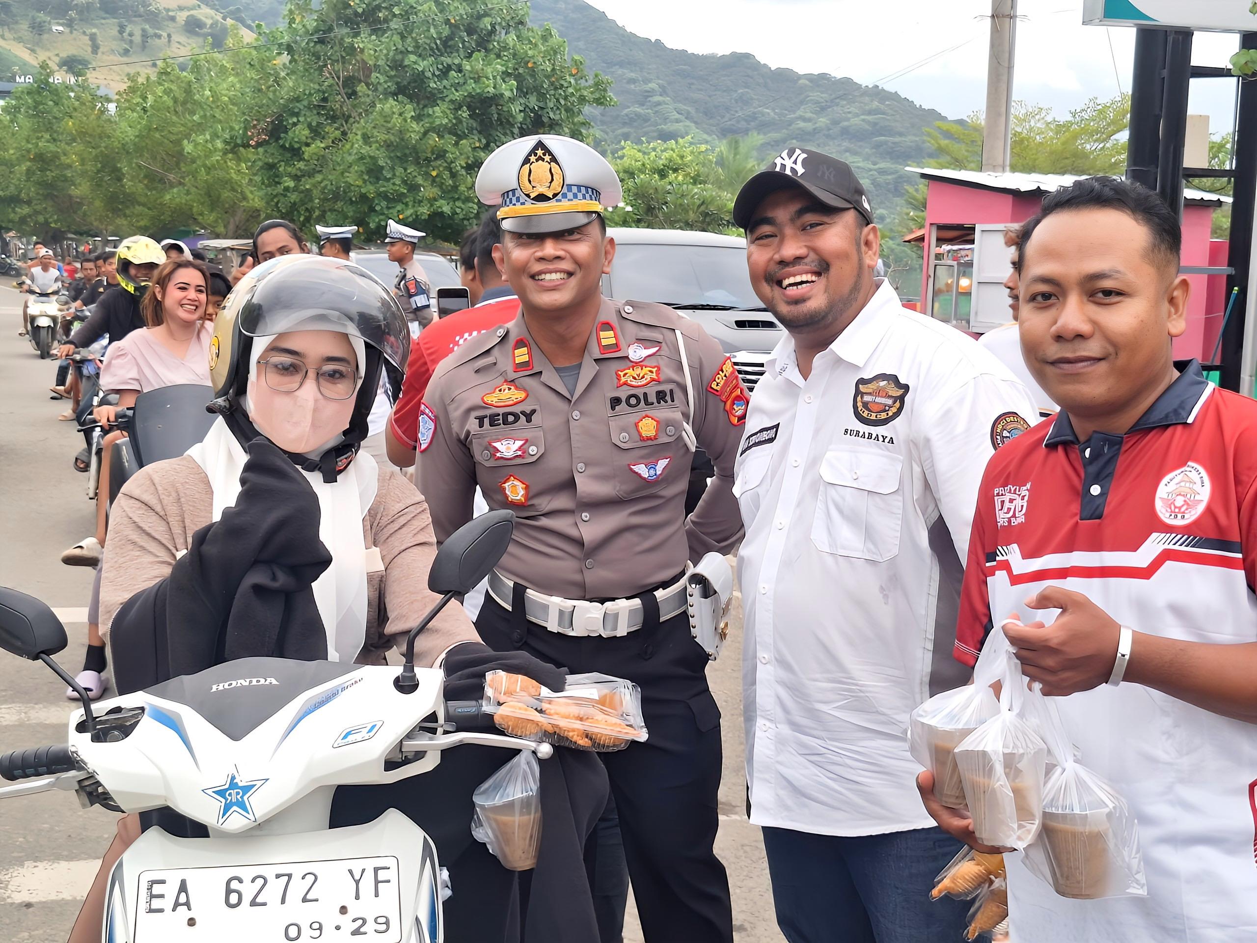Kota Bima, NTB (24 Maret 2025) – Dalam rangka meningkatkan kesadaran berlalu lintas sekaligus berbagi di bulan suci Ramadhan, Satuan Lalu Lintas (Satlantas) Polres Bima Kota bersama Paguyuban Bikers Bima menggelar aksi simpatik dengan membagikan takjil gratis kepada masyarakat yang ngabuburit di depan Masjid Terapung Amahami, Kota Bima, Jalan Sultan Muhammad Salahuddin, pada Minggu (23/3).