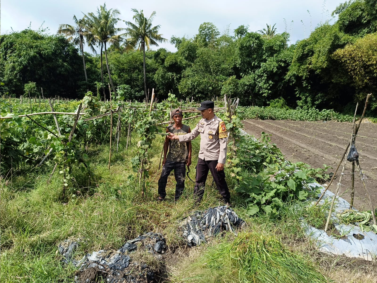 Sumbawa Besar-NTB, Dalam rangka mendukung ketahanan pangan nasional, Bhabinkamtibmas Polsek Labuhan Badas, Bripka Akhyar, melakukan kunjungan ke perkebunan warga binaannya di Dusun Sumer Payung, Desa Karang Dima, Kecamatan Labuhan Badas, Jumat (28/03/25) pagi.