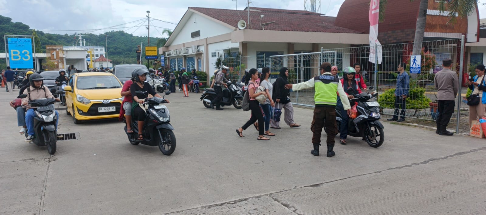Lembar, Lombok Barat – Arus kedatangan penumpang dan kendaraan dari Pelabuhan Padangbai, Bali, di Pelabuhan Penyeberangan PT. ASDP Lembar terpantau berjalan aman dan lancar pada Minggu (30/3/2025). Hal ini disampaikan langsung oleh Kepala Pos Pelayanan dan Terpadu Pelabuhan Lembar, Iptu Benhard Simanungkalit, saat memantau proses bongkaran kapal KMP. DHARMA FERRY IX yang tiba sekitar pukul 15.00 Wita.