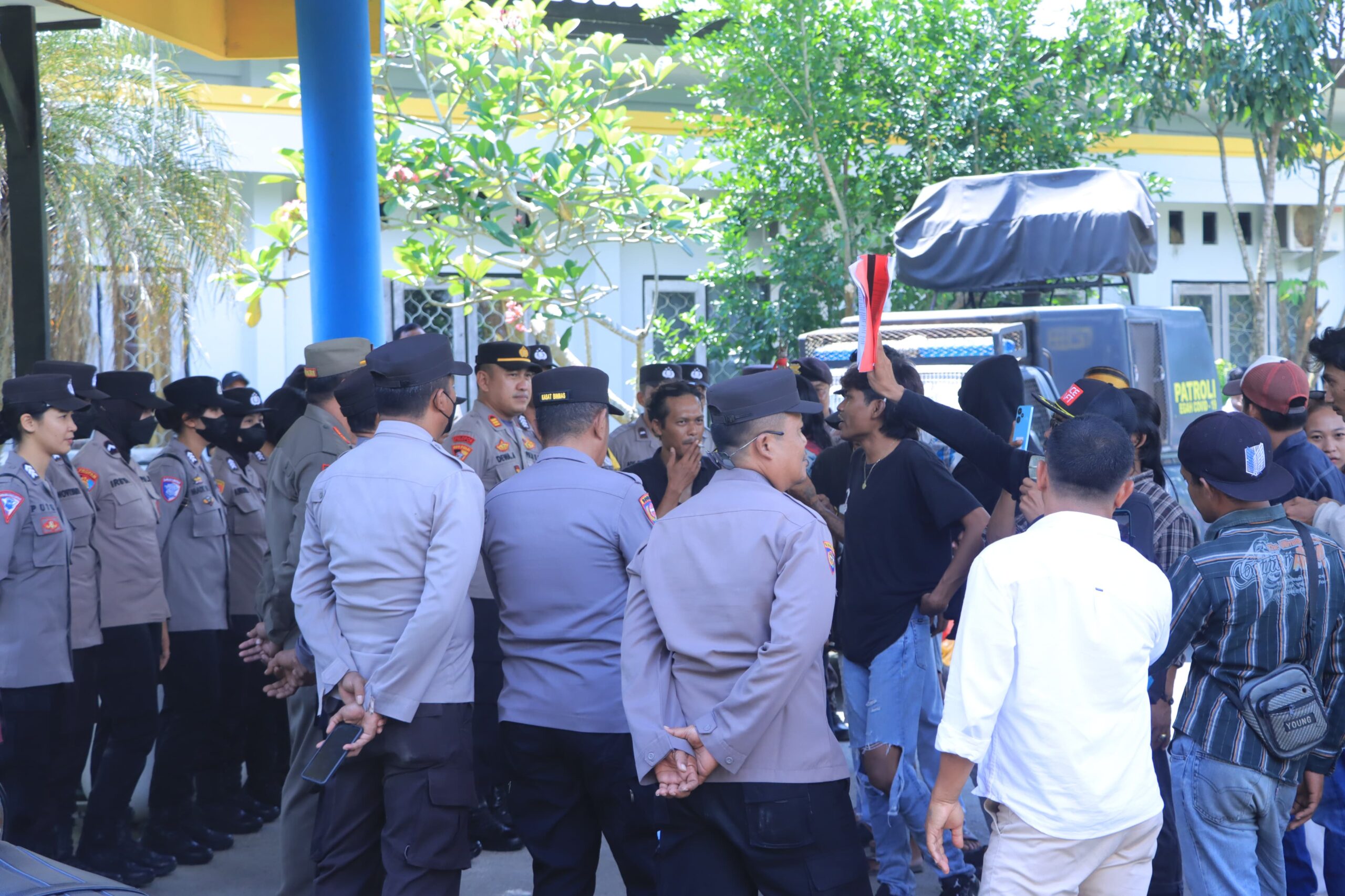Polres Sumbawa Barat Berikan Pengamanan pada Aksi Unjuk Rasa Kelompok Masyarakat (FPT) di Kantor Dinas PUPR