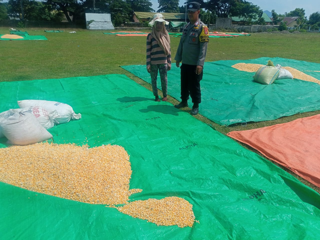 Dalam rangka mendukung Program Ketahanan Pangan Nasional Menuju Indonesia Emas 2045, Bhabinkamtibmas Desa Daha Polsek Hu’u BRIPKA ADI SETIADI melaksanakan kegiatan pemantauan terhadap proses penjemuran jagung milik Ibu Halimah, warga Dusun Sandang Pangan, Desa Daha, Kecamatan Hu’u, Kabupaten Dompu, pada Jumat (25/04/2025) pukul 10.30 Wita.