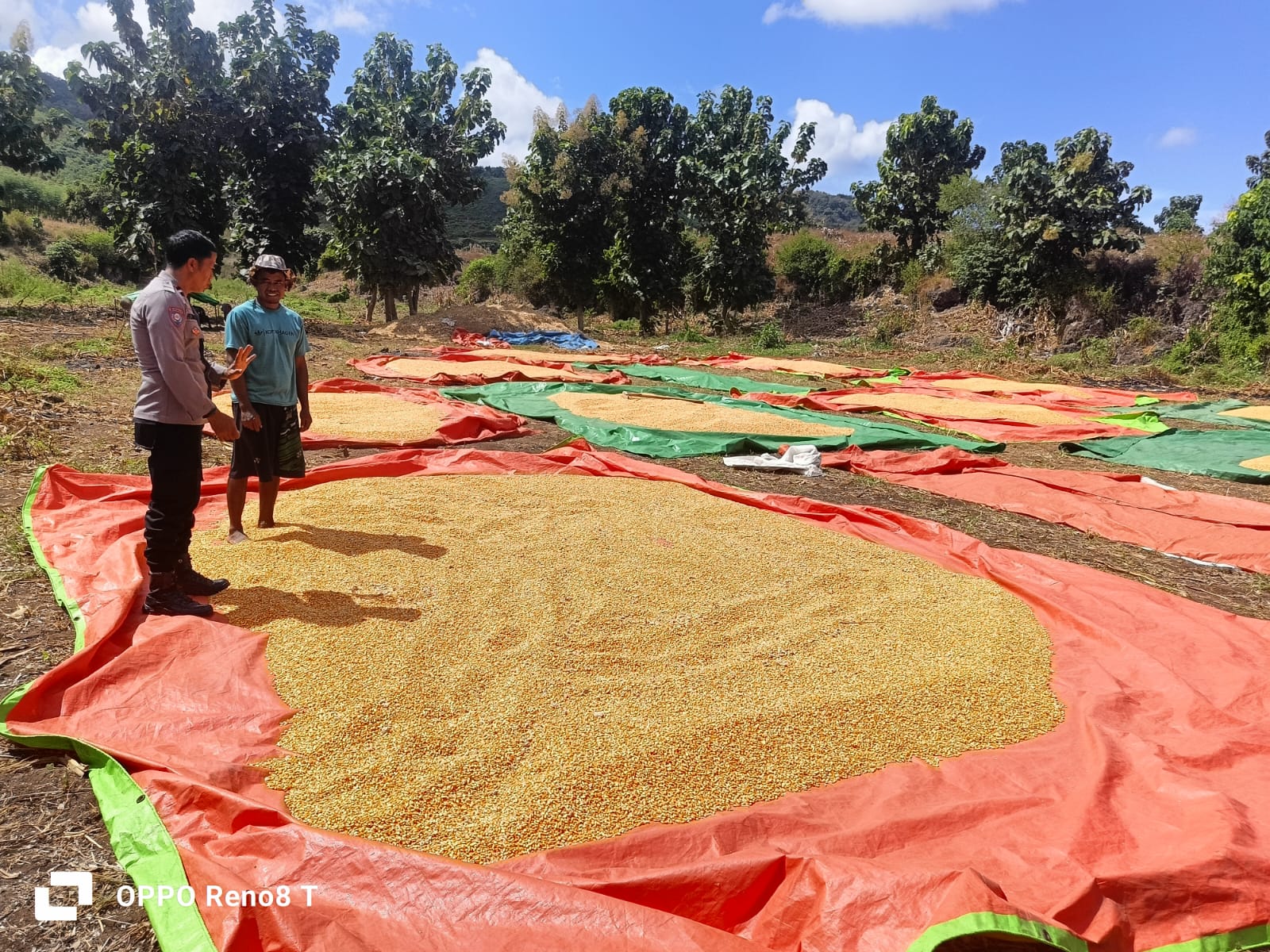 “Curah hujan yang tidak menentu belakangan ini perlu menjadi perhatian. Belajar dari pengalaman desa lain, banyak jagung hasil panen yang rusak karena tergenang air hujan. Ini berdampak langsung pada kadar air dan harga jual,” ujar AIPDA M. Husnin kepada petani setempat.