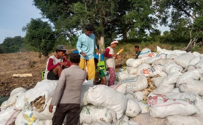 Membantu kegiatan petani di Desa Binaan menjadi keseharian Bhabinkamtibmas Polsek Soromandi Polres Bima Polda NTB Brigpol Sukarna.
