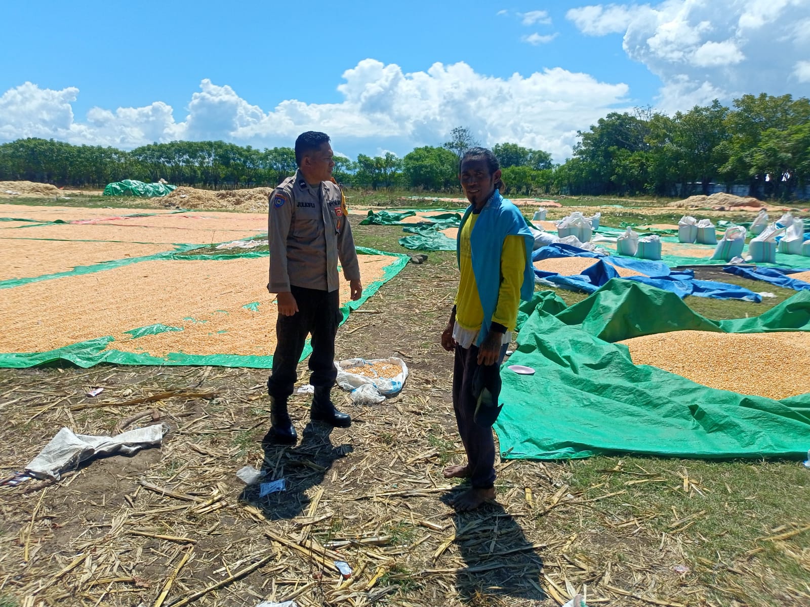 Dukung Ketahanan Pangan Nasional, Bhabinkamtibmas Desa Marada Pantau Langsung Proses Penjemuran Jagung Milik Warga