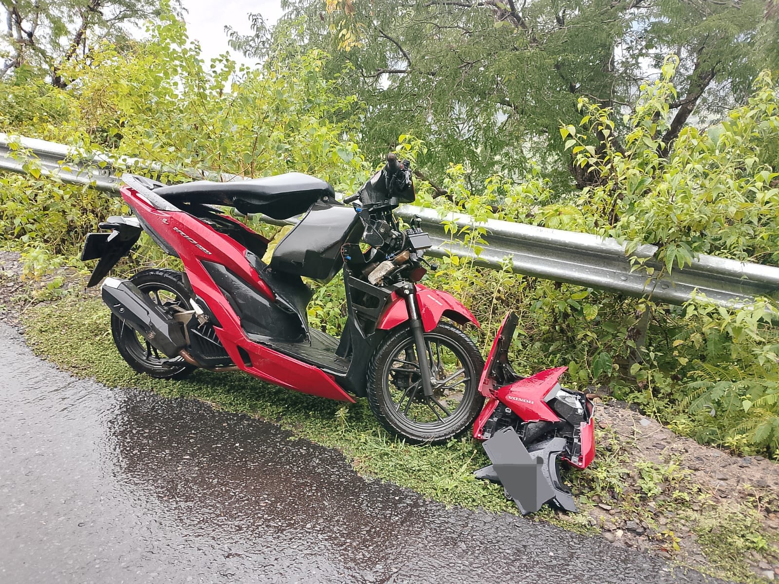 Sumbawa Barat, NTB – Kecelakaan tunggal kembali terjadi di jalan raya dari Desa Mantar menuju Seteluk, Kabupaten Sumbawa Barat. Peristiwa tersebut mengakibatkan satu unit sepeda motor ringsek dan pengendaranya terpental ke jurang, pada Minggu (11/05/2025).