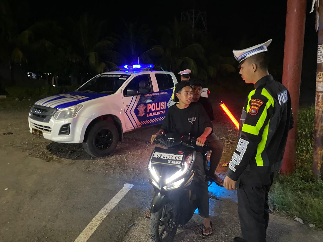 LOMBOK UTARA – Guna menjaga kamseltibcar lantas di wilayah hukum Polres Lombok Utara, Satuan Lalu Lintas (Sat Lantas) Polres Lombok Utara melakukan patroli Blue Light yang bertempat di jalur utama wilayah Kecamatan Gangga KLU, dengan memberikan imbauan kepada Pengendara untuk tertib berlalulintas Selasa malam, 20/5/2025.