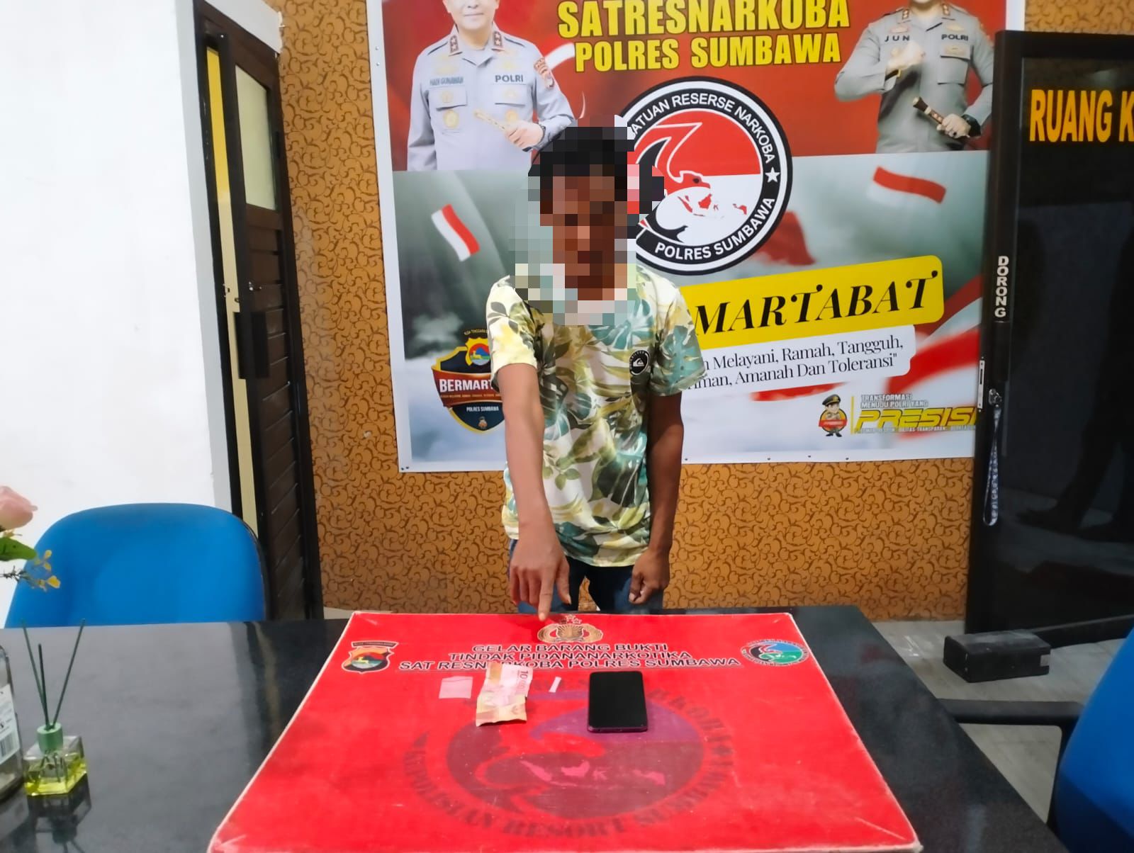 Sumbawa Besar–NTB, Satuan Reserse Narkoba Polres Sumbawa kembali menunjukan komitmennya dalam memberantas peredaran narkotika di wilayah Kabupaten Sumbawa. Seorang pria bernisial J (30 tahun) yang diduga pengguna sabu berhasil diringkus petugas di Tarano pada hari Senin (26/05/2025) sekitar pukul 19.30 Wita.