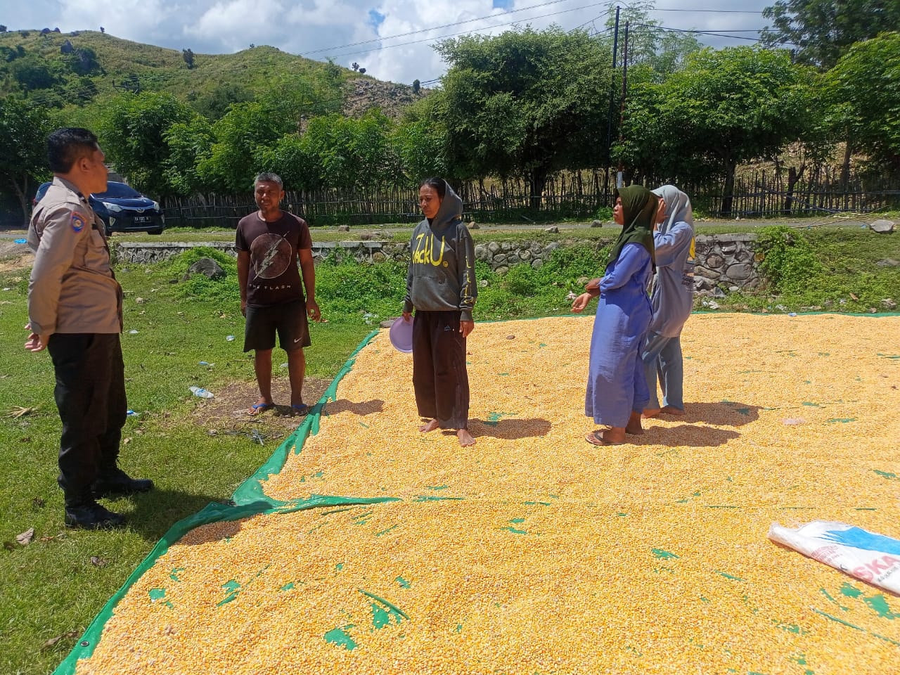 Dalam rangka mendukung Program Ketahanan Pangan Nasional menuju Indonesia Emas 2045, Bhabinkamtibmas Desa Marada Polsek Hu’u, Aipda Julkifli, melaksanakan kegiatan pemantauan terhadap aktivitas warga yang sedang melakukan penjemuran hasil panen jagung, Senin (27/5/2025) pukul 10.00 Wita di Dusun Nanga Sia, Desa Marada, Kecamatan Hu’u, Kabupaten Dompu.