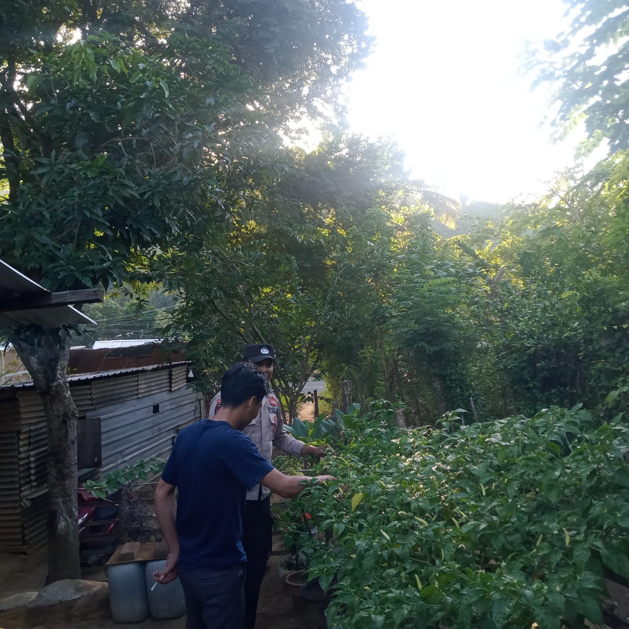 Dalam kegiatan tersebut, Bhabinkamtibmas turut memberikan edukasi dan motivasi kepada warga agar tetap konsisten menjalankan program ini. Ia juga melakukan pengecekan langsung terhadap lahan-lahan tanam milik warga untuk memastikan pengelolaan berjalan dengan baik.