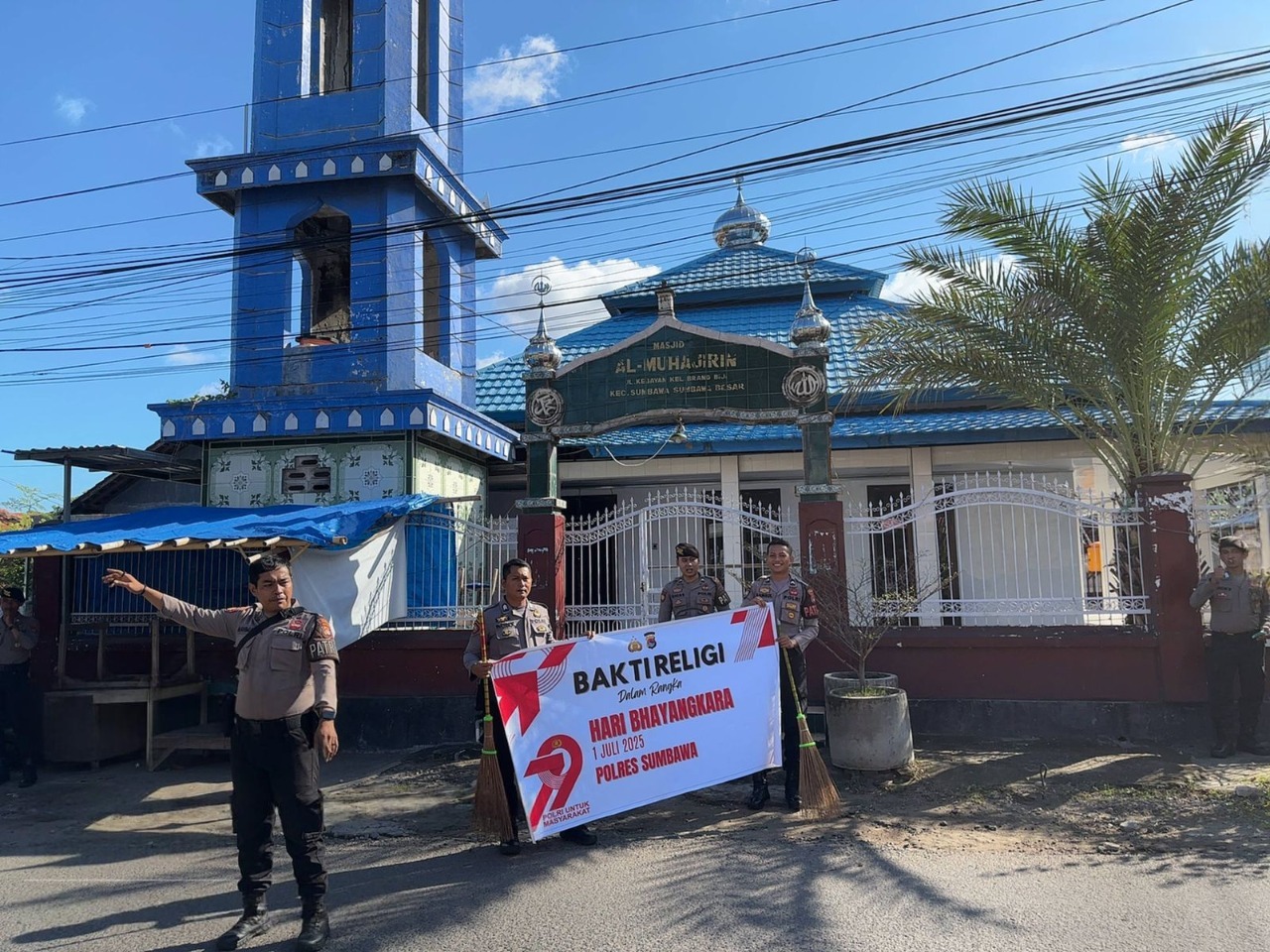Sumbawa Besar–NTB, Dalam rangka menyambut Hari Bhayangkara ke-79 tahun 2025, personel Satuan Samapta (Sat Samapta) Polres Sumbawa menggelar kegiatan bakti religi pada Selasa, 17 Juni 2025. Acara yang dimulai pukul 09.00 WITA hingga selesai ini berpusat di Masjid Al-Muhaimin, Jalan Kebayan, Kelurahan Brang Biji, Kecamatan Sumbawa.