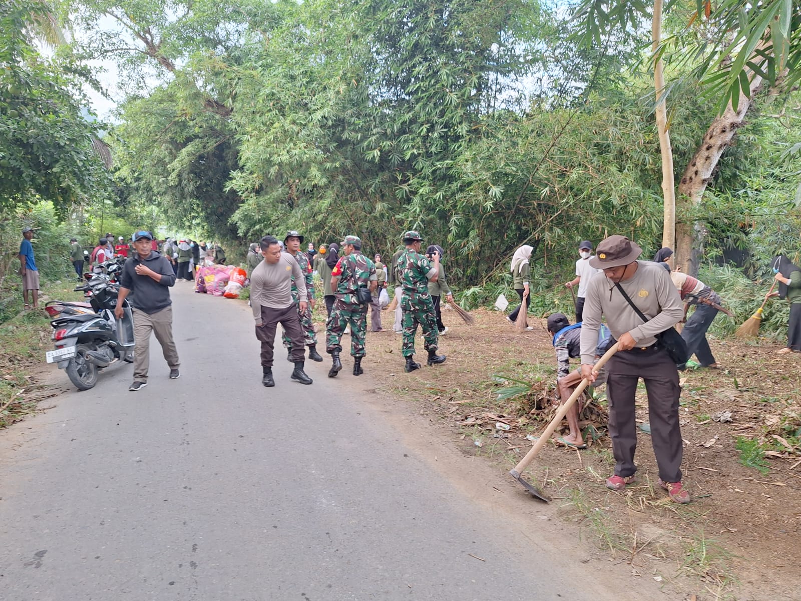 Aksi bersih-bersih ini dilaksanakan di jalur penghubung antara Desa Seteluk Tengah dan Desa Rempe, Kecamatan Seteluk, Kabupaten Sumbawa Barat. Kegiatan tersebut dihadiri oleh Camat Seteluk, Danramil Seteluk, para kepala desa, personel Polsek Seteluk, anggota Koramil Seteluk, serta puluhan warga yang antusias berpartisipasi.