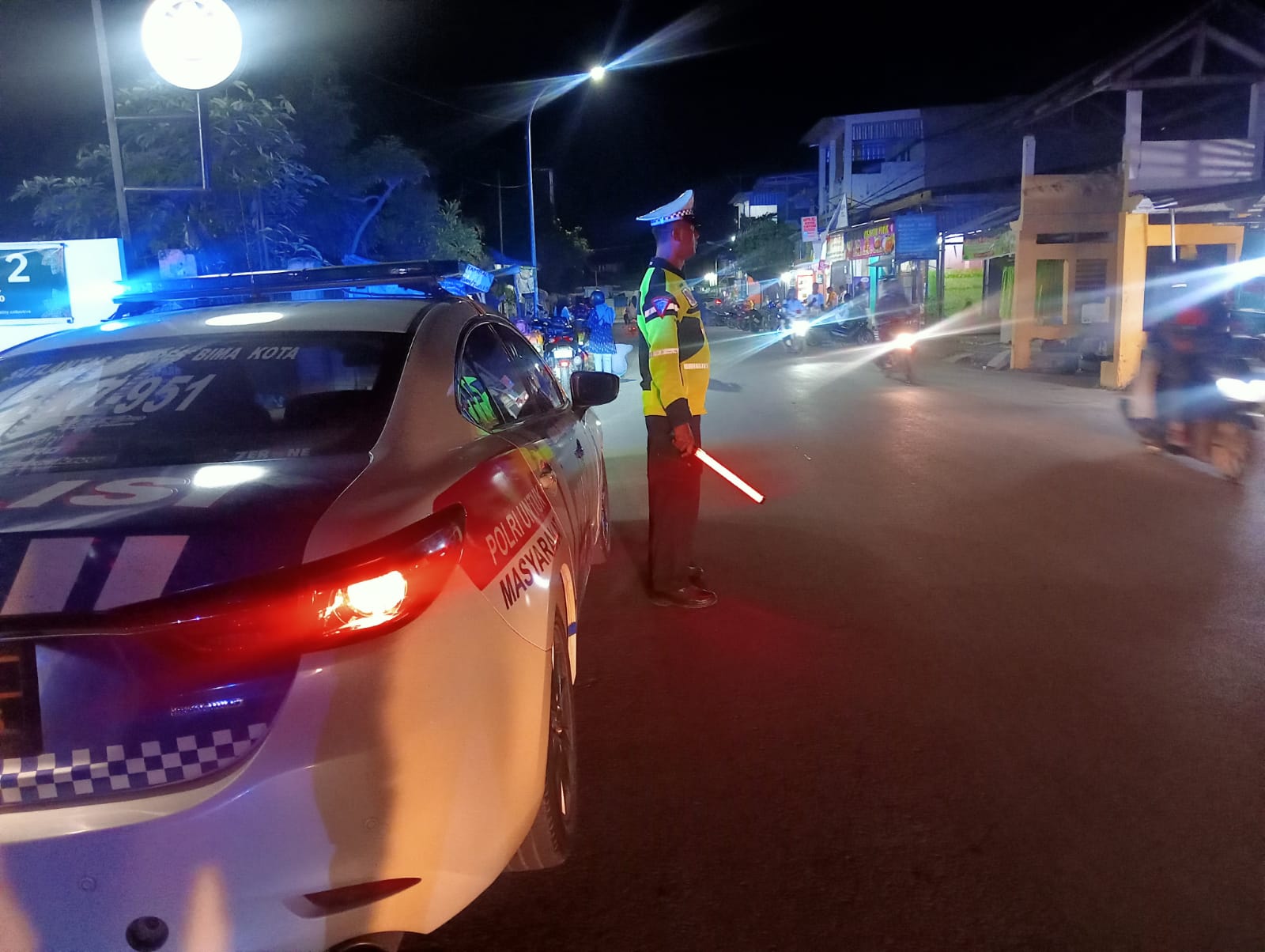 Kota Bima, NTB (19 Juni 2025) – Guna menciptakan situasi lalu lintas yang aman dan tertib, Satuan Lalu Lintas Polres Bima Kota melaksanakan kegiatan Blue Light Patrol yang dirangkaikan dengan pengaturan arus lalu lintas di kawasan Jalan Gajah Mada, Kota Bima, Kamis malam (19/6/2025) mulai pukul 20.00 Wita.