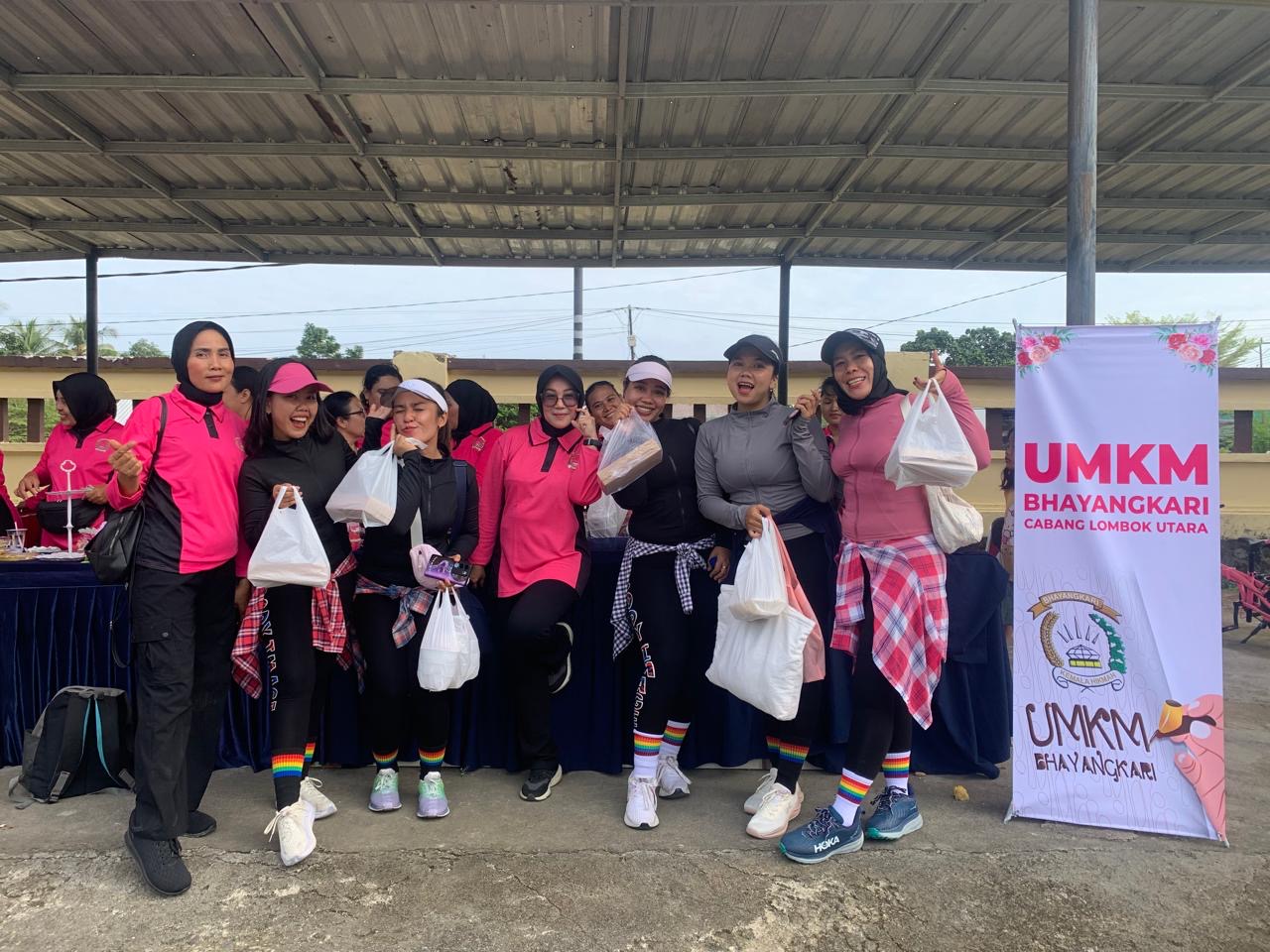 LOMBOK UTARA – Sejumlah produk hasil kreasi Usaha Mikro Kecil Menengah (UMKM) Bhayangkari Cabang Lombok Utara hiasi olah raga bersama di Polres Lombok Utara, Selasa (24/6/2025).