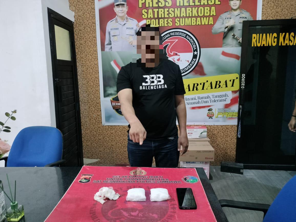 Sumbawa Besar — NTB, Satuan Reserse Narkoba Polres Sumbawa berhasil mengungkap kasus peredaran narkotika jenis sabu dengan mengamankan seorang terduga pelaku berinisial H (34)  di sebuah kamar kos di Desa Usar Mapin, Kecamatan Alas Barat pada Selasa (24/6/2025) sekitar pukul 14.30 WITA. Dari tangan terduga pelaku, polisi menyita 198,11 gram sabu.