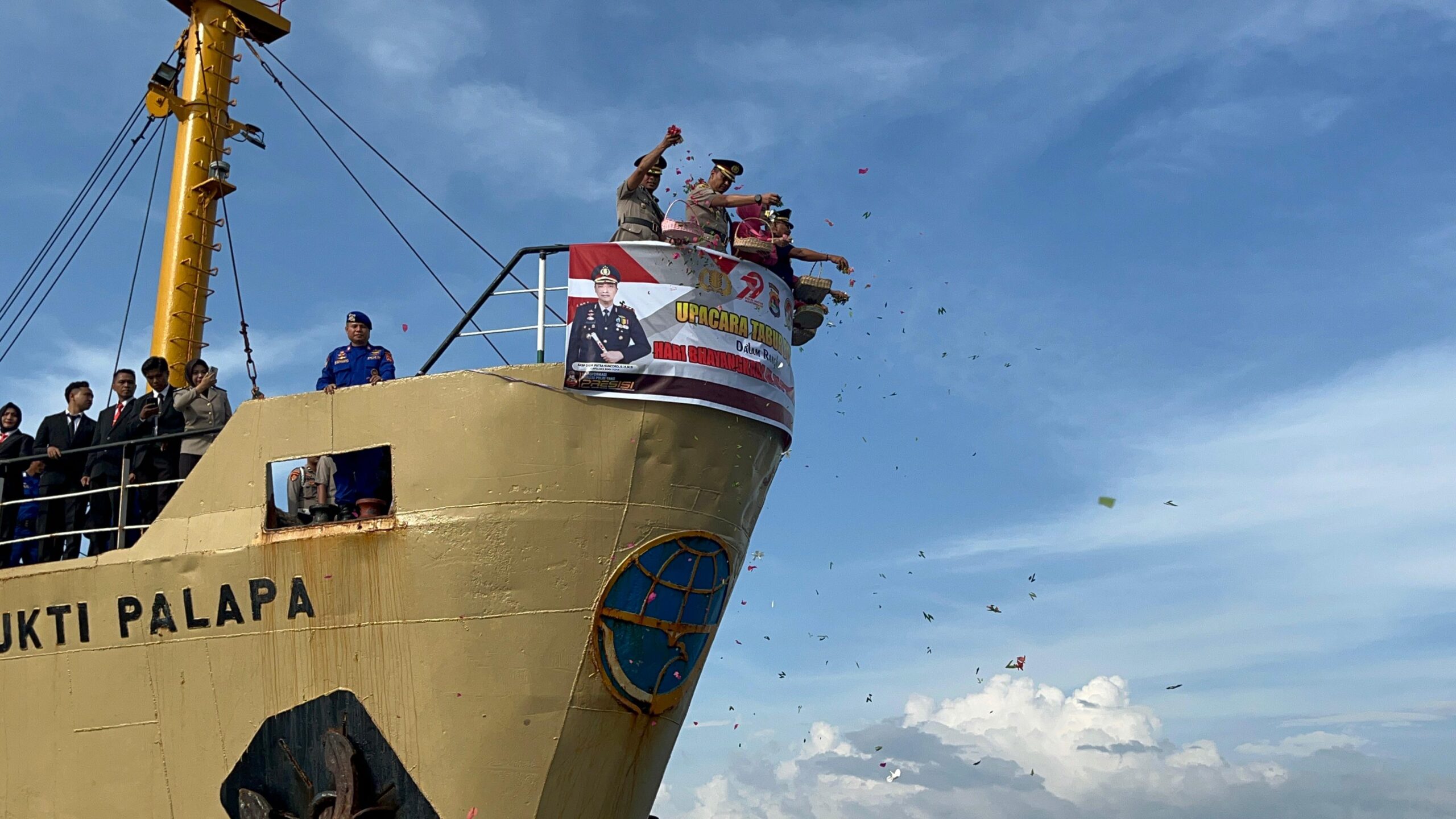 Kota Bima, NTB (27 Juni 2025) – Dalam rangka memperingati Hari Bhayangkara ke-79, Polres Bima Kota menggelar upacara tabur bunga di Dermaga Pelabuhan Laut Bima pada Jumat (27/6/2025) pukul 08.00 WITA. Kegiatan penuh khidmat ini dipimpin langsung oleh Kapolres Bima Kota, AKBP Didik Putra Kuncoro, S.I.K., M.Si., sebagai bentuk penghormatan kepada para pahlawan yang telah gugur dalam tugas.
