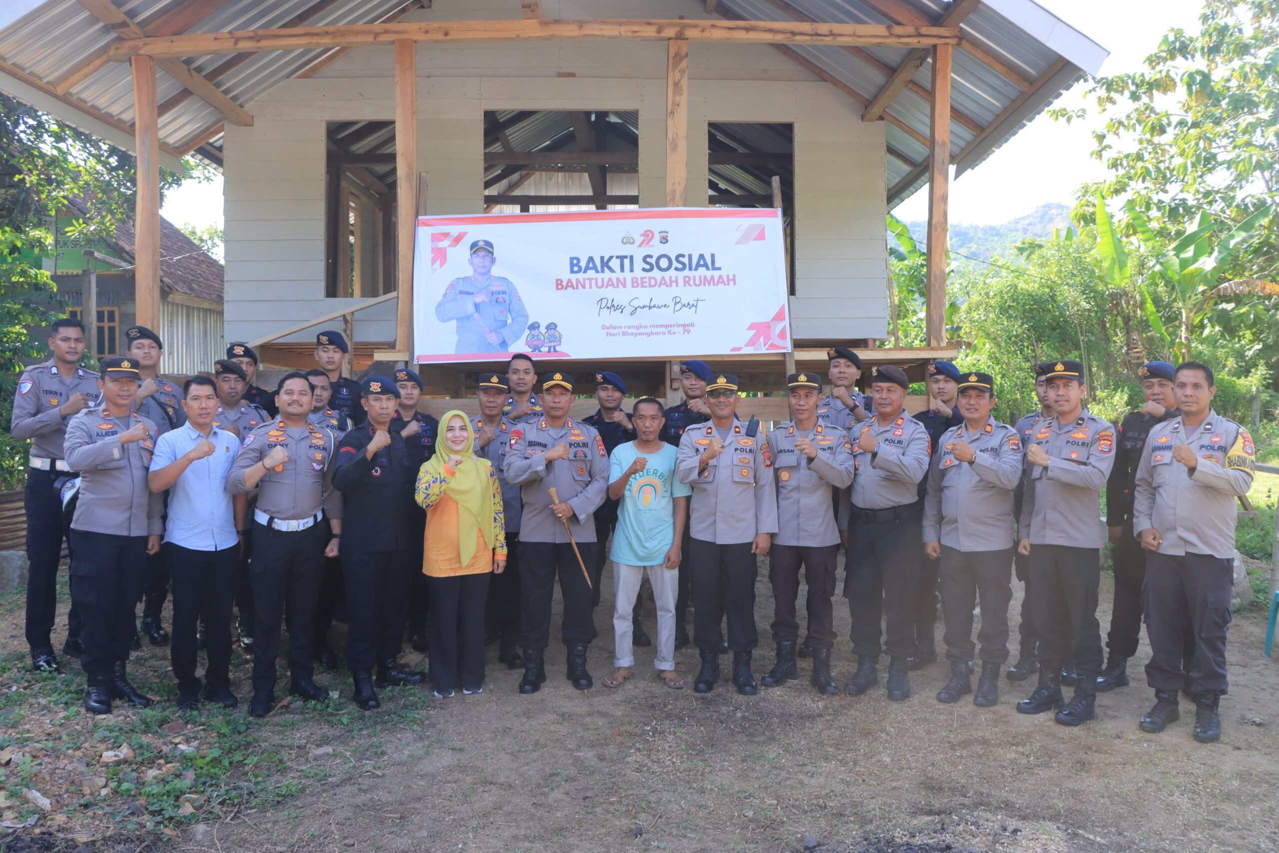 Sumbawa Barat, NTB – Dalam rangka menyambut Hari Bhayangkara ke-79, Polres Sumbawa Barat melaksanakan kegiatan bakti sosial berupa bedah rumah milik warga atas nama Bapak Arif Budiman yang beralamat di Lingkungan Belisung, Kelurahan Menala, Kecamatan Taliwang, Kabupaten Sumbawa Barat. Kegiatan ini dilaksanakan pada hari Sabtu, 28 Juni 2025, pukul 09.00 WITA.