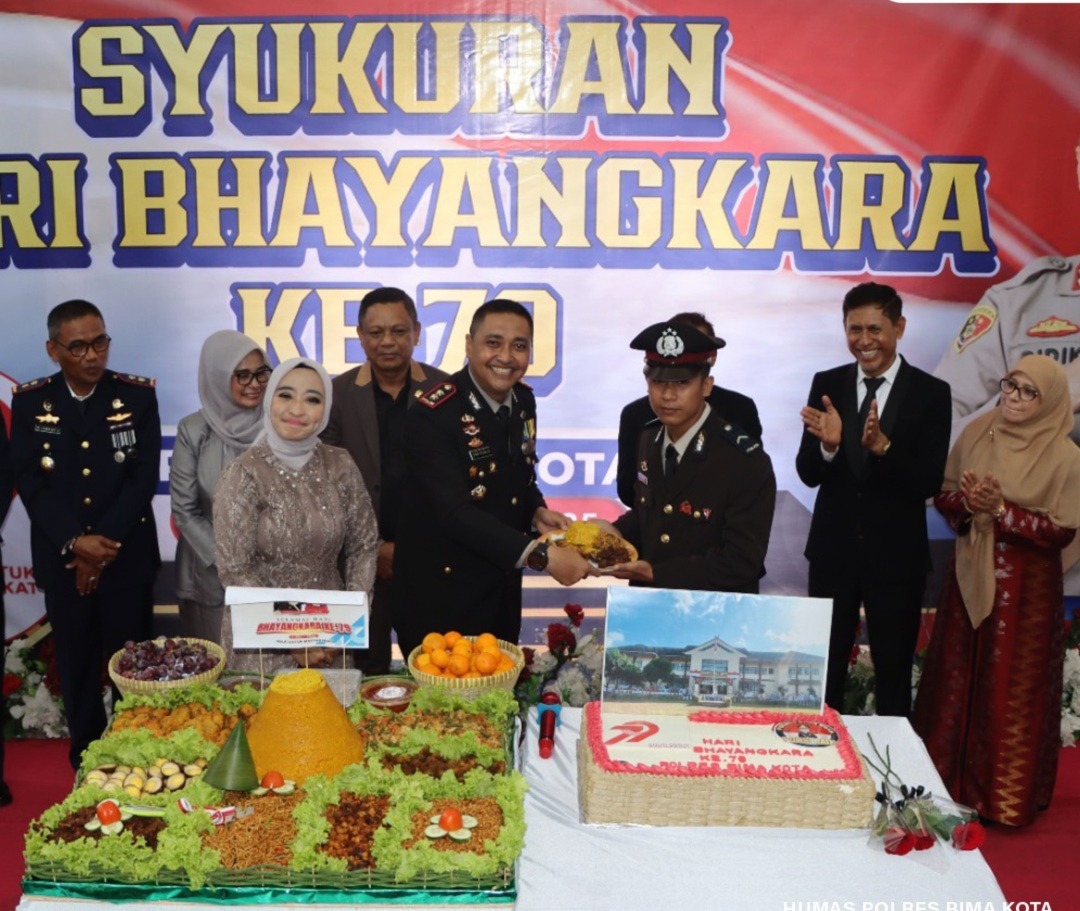 Puncak syukuran ditandai dengan pemotongan tumpeng oleh Kapolres Bima Kota AKBP Didik Putra Kuncoro, yang kemudian diberikan secara simbolis kepada Wakil Wali Kota Bima, Wakil Bupati Bima, serta kepada anggota Polres Bima Kota termuda dan tertua. Momen ini menggambarkan semangat kebersamaan, rasa syukur, serta apresiasi atas dedikasi seluruh anggota kepolisian dalam menjalankan tugasnya.