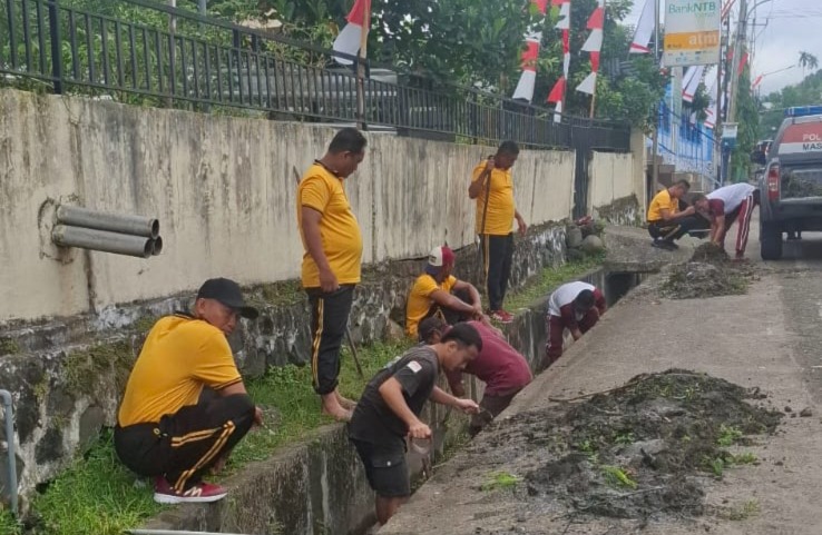 Personel Polsek Wawo Laksanakan Giat Gotong Royong di Mako