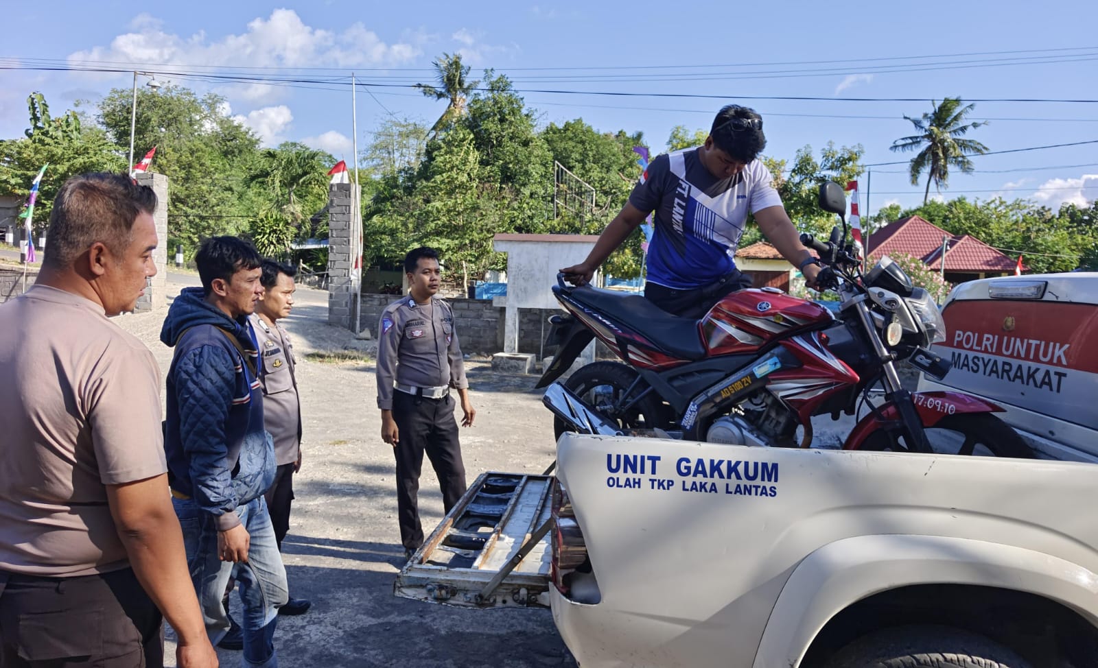 Pengendara dan rekannya meminta pertolongan kepada warga sekitar untuk mengamankan diri ke Mapolsek Sanggar.