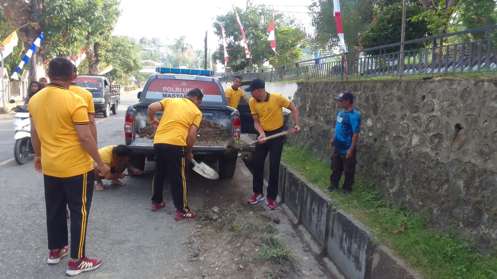 Kegiatan tersebut dipimpin langsung oleh Kapolsek Wawo dan melibatkan seluruh personel yang dengan semangat bahu membahu membersihkan area sekitar Mako, termasuk membuang tanah dan lumpur dari saluran air agar tidak terjadi penyumbatan yang dapat menimbulkan genangan saat hujan.
