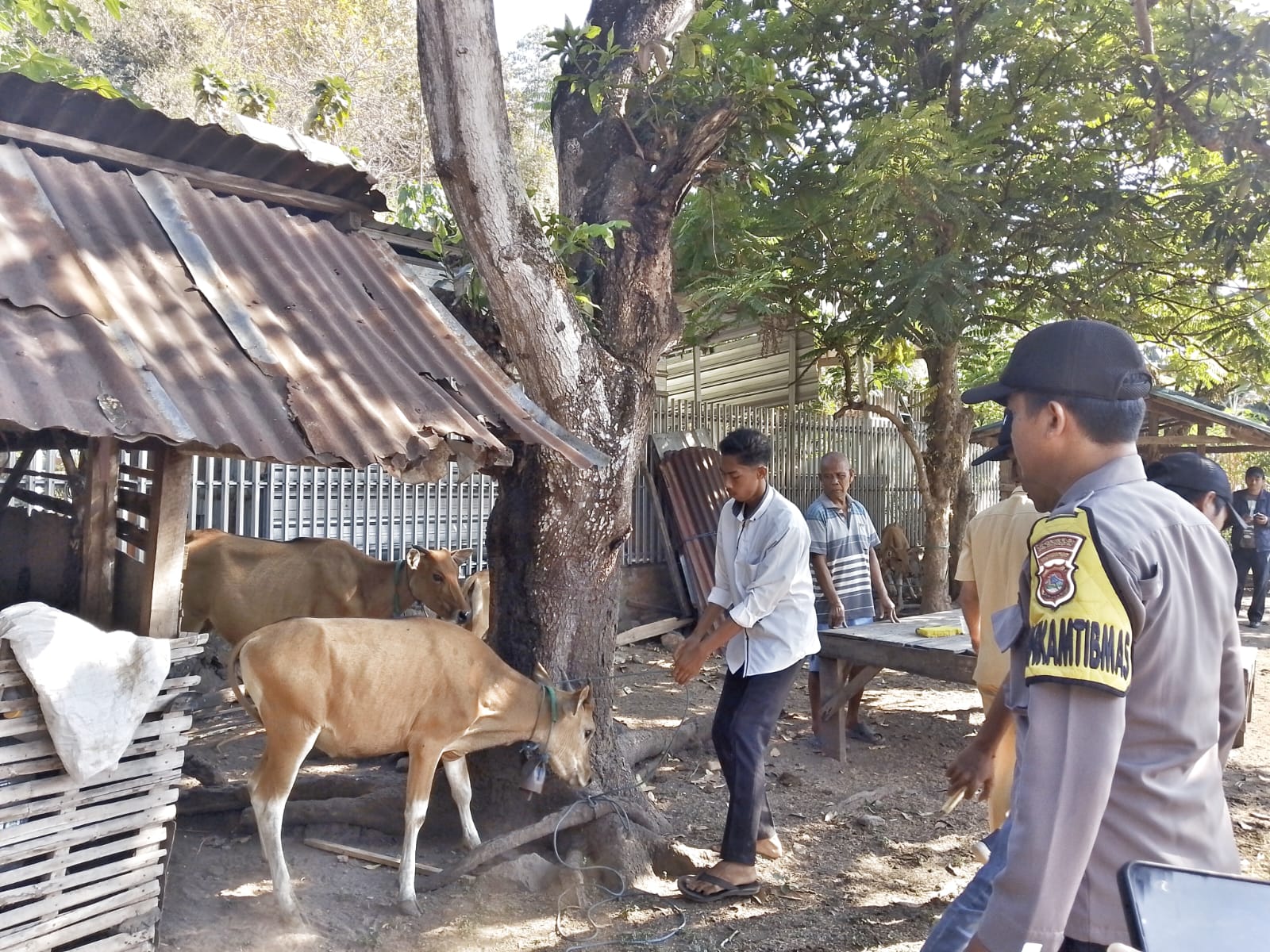 “Bhabinkamtibmas bersama Sekretaris Lurah dan staf Kelurahan Jatibaru Timur mendampingi petugas dari Dinas Pertanian Kota Bima dalam pelaksanaan vaksinasi penyakit Anthrax dan Septicaemia Epizootica (AT/SE), serta pendataan melalui pengkartuan terhadap hewan ternak seperti sapi dan kambing,” ungkap Ipda Baiq Fitria.
