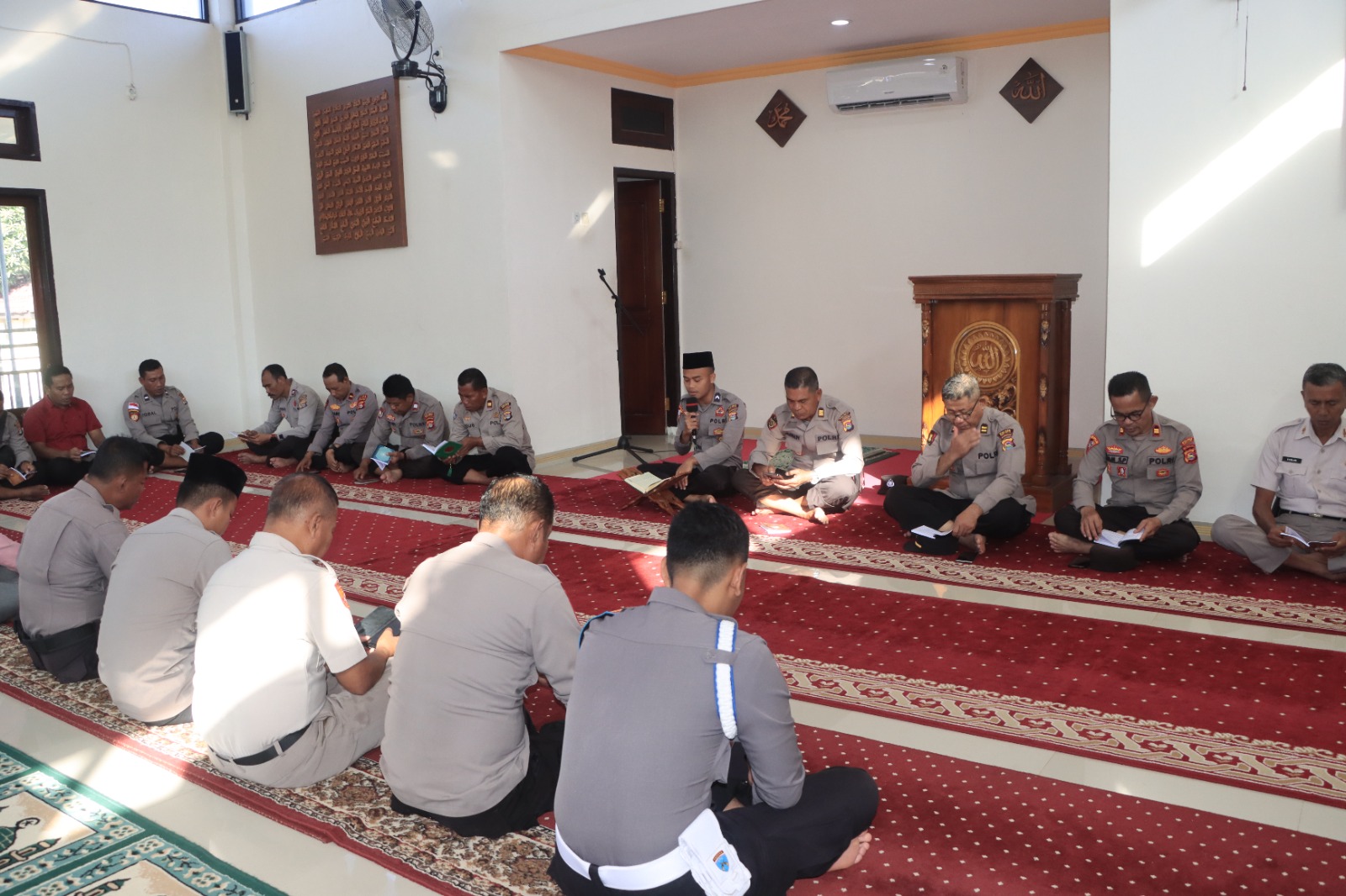Kegiatan diawali dengan pembacaan Surah Yasin, dilanjutkan dengan doa bersama yang dipanjatkan untuk keselamatan, kelancaran tugas, dan keberkahan bagi seluruh anggota serta masyarakat.