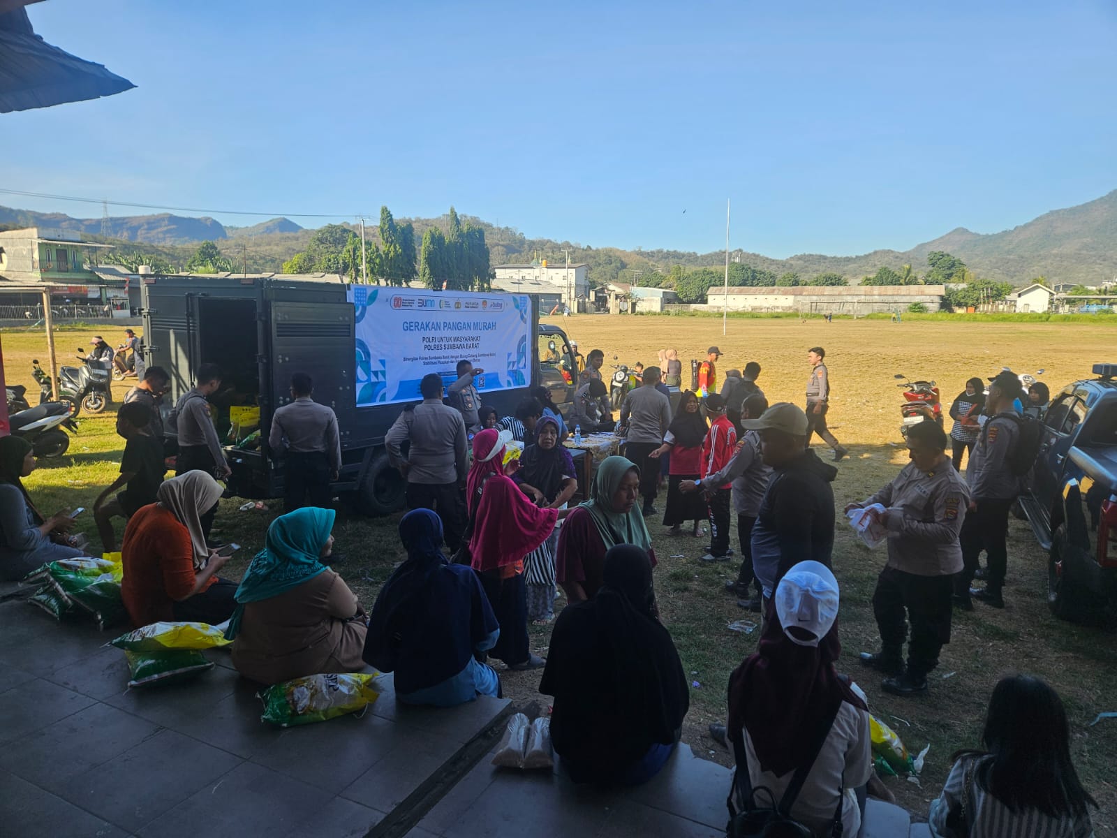 Sumbawa Barat, 13 Agustus 2025 – Pada Rabu, 13 Agustus 2025, Polres Sumbawa Barat menggelar kegiatan Gerakan Pangan Murah (GPM) di Kecamatan Maluk dan Kecamatan Sekongkang, Kabupaten Sumbawa Barat. Kegiatan yang dipimpin oleh Wakapolres Sumbawa Barat, KOMPOL I Nyoman Adi Kurniawan, S.H., ini bertujuan untuk membantu masyarakat mendapatkan bahan pangan dengan harga yang lebih terjangkau.
