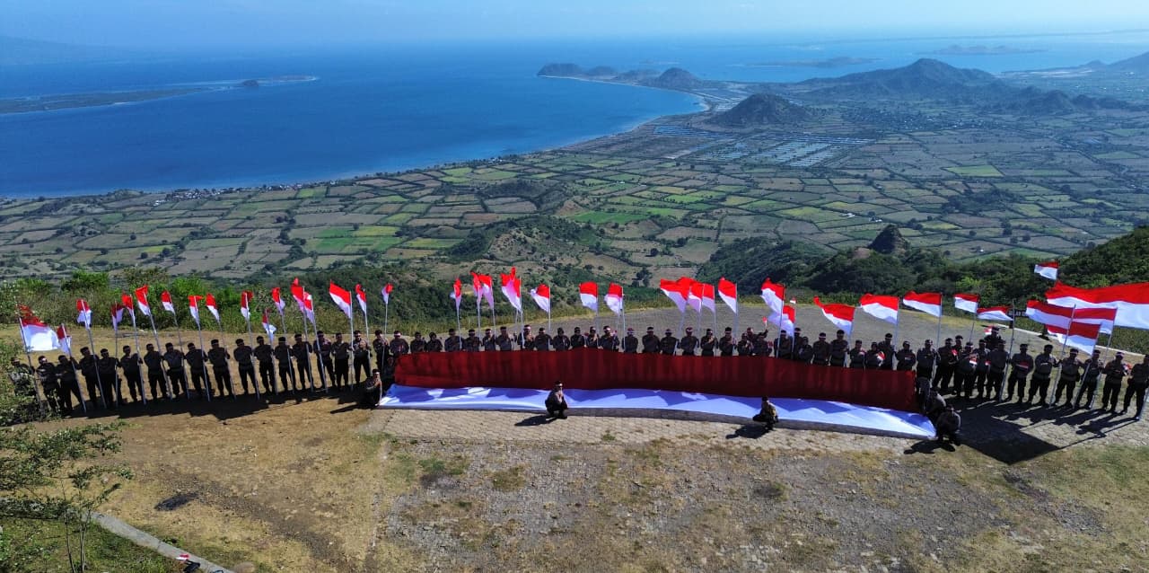 Semarak memperingati HUT ke-80 Kemerdekaan Republik Indonesia, Polres Sumbawa Barat Melaksanakan Pengibaran Bendera Merah Putih di Puncak Mantar