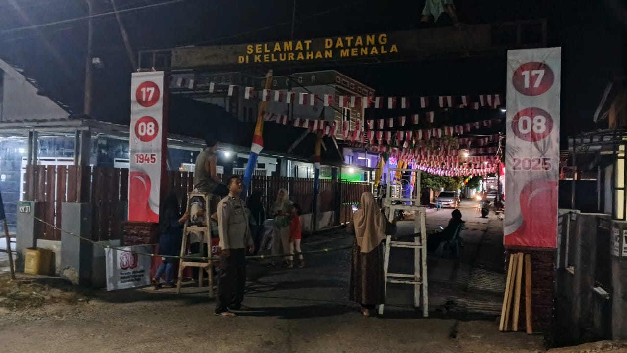 ​Kegiatan yang dimulai pukul 20.00 WITA ini dipimpin langsung oleh Lurah Menala, dan dihadiri oleh Babinsa serta perwakilan dari AGR. Dengan semangat kebersamaan, mereka bahu membahu menghias gapura kelurahan yang menjadi salah satu titik fokus perlombaan.